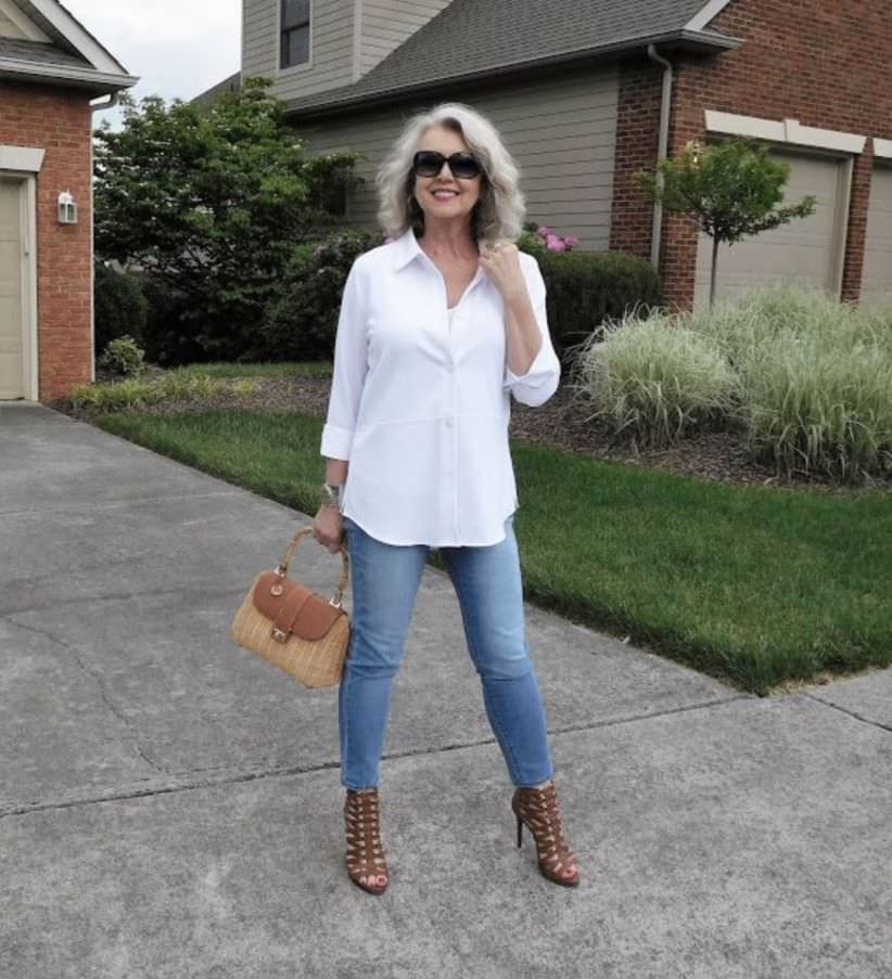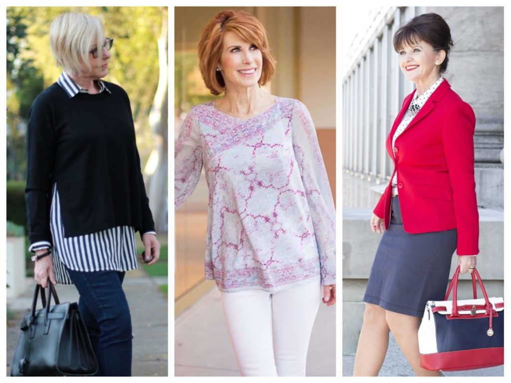 Blouses and shirts are another integral part of the wardrobe. Forget about transparent blouses. At this age, this will not only emphasize the flaws, but it also looks very vulgar. Otherwise, the choice is great, elongated shirt, classic, etc. trust your taste and preferences.