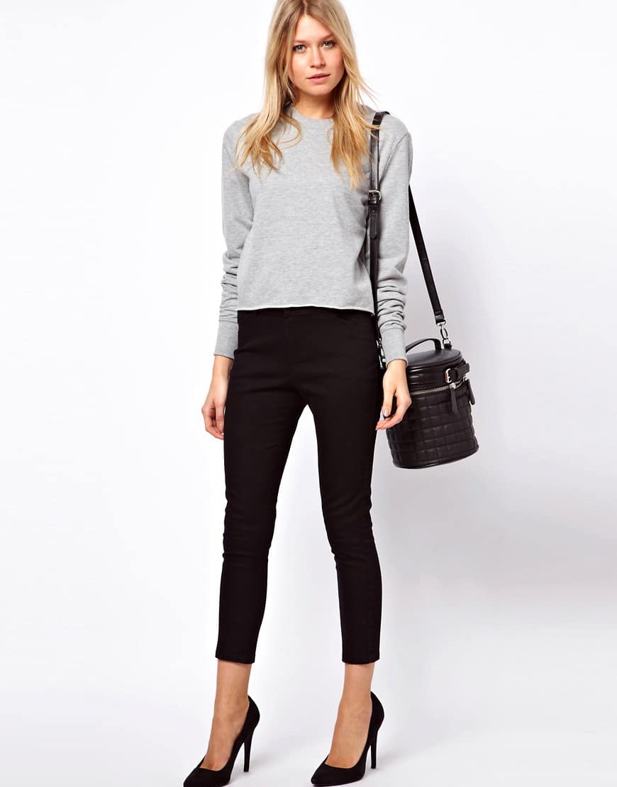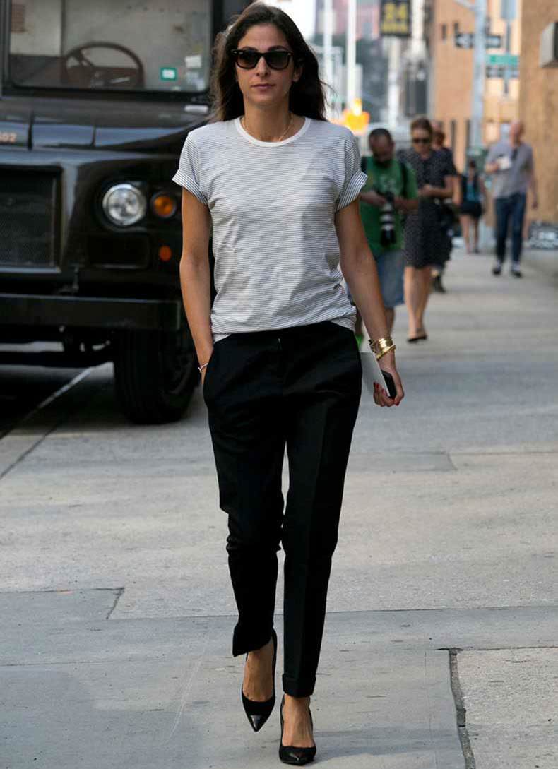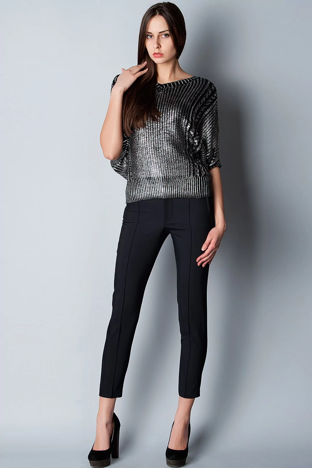 Skinny trousers can be easily arranged with a completely diverse top. It can be either business options with various blouses, or more romantic summer looks with tops and even t-shirts.