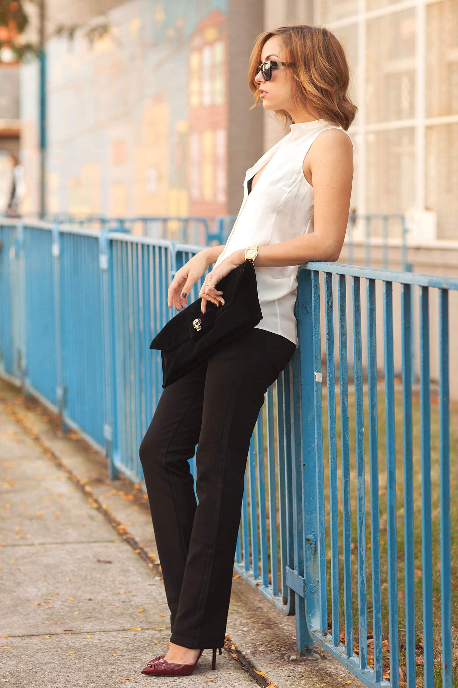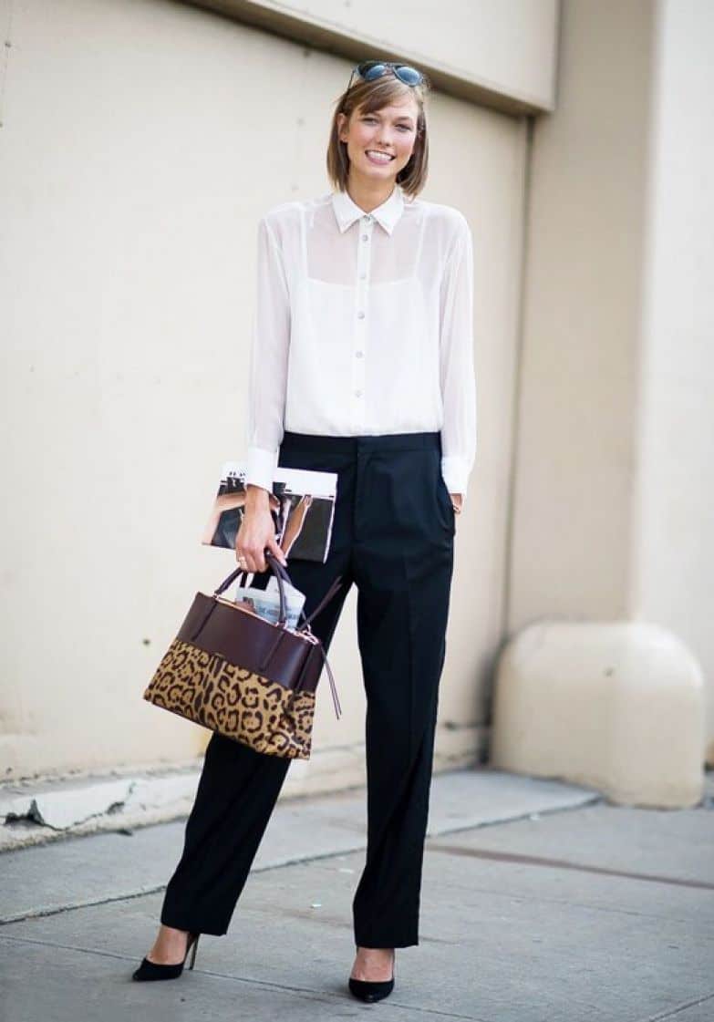 An unshakable classic is the combination of a black bottom and a white top. That is why black trousers in combination with a white blouse always look luxurious.