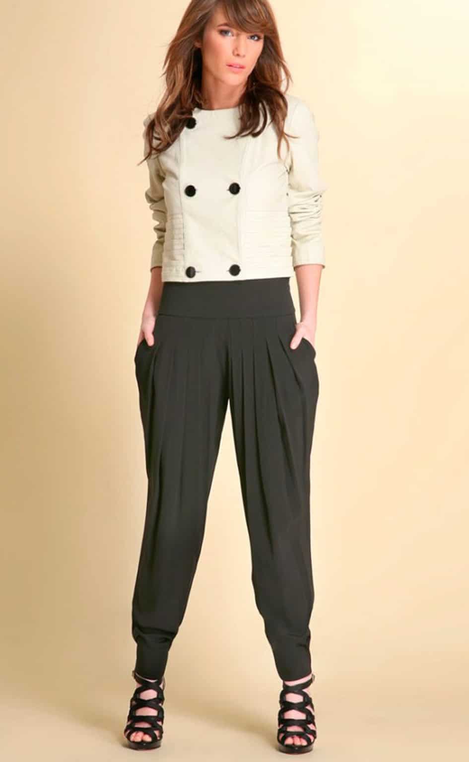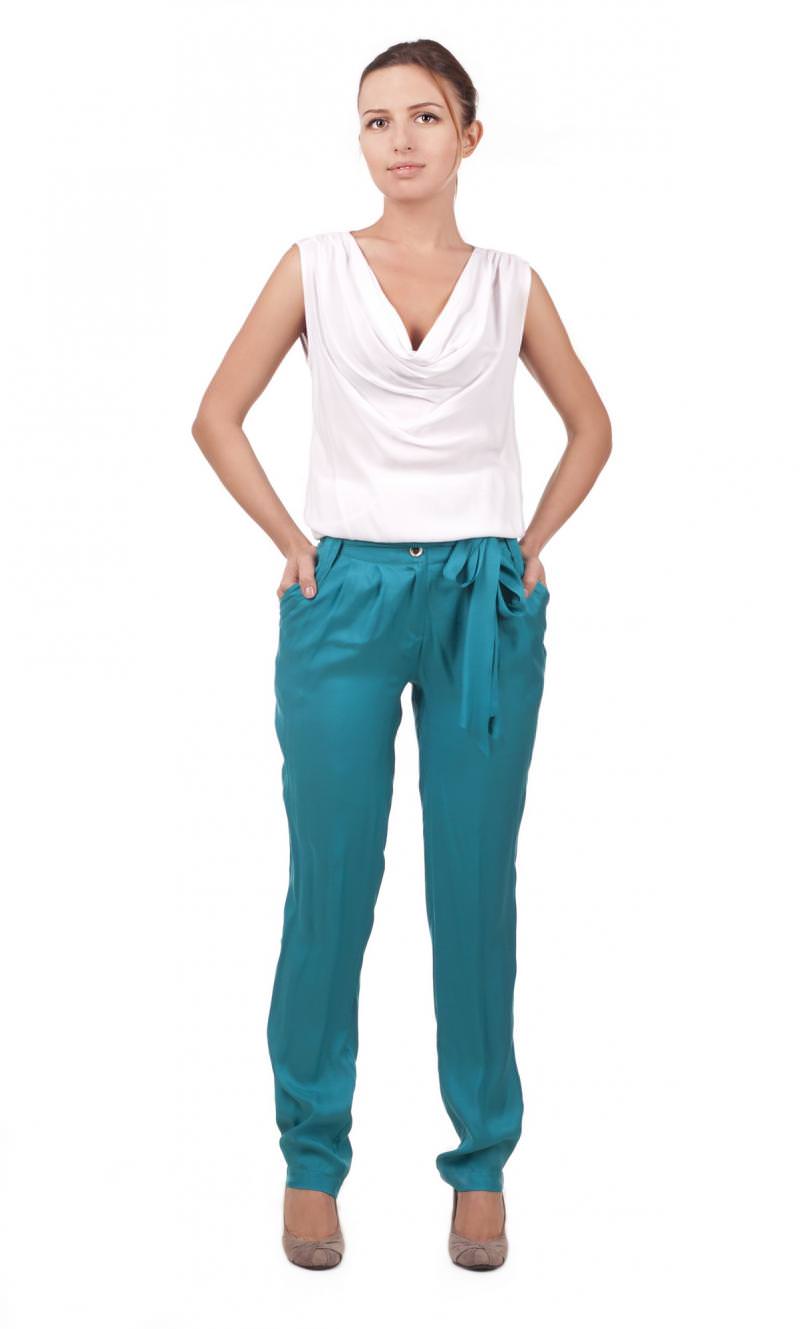 Ladies with a chiseled figure with the right proportions and a fairly high growth can wear banana pants without much risk. This is due to the fact that "bananas" visually add volume to the hips, and legs are made shorter.
