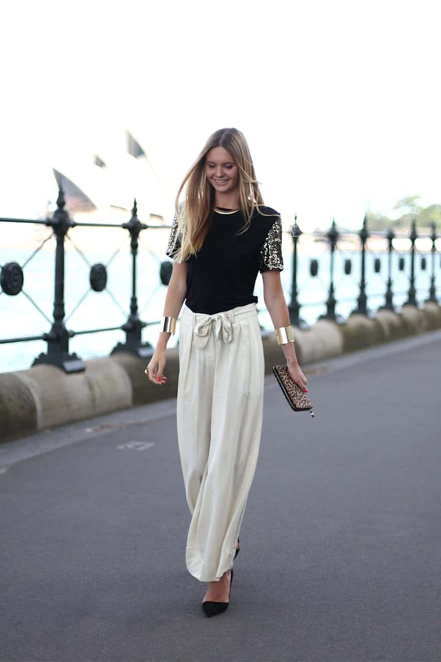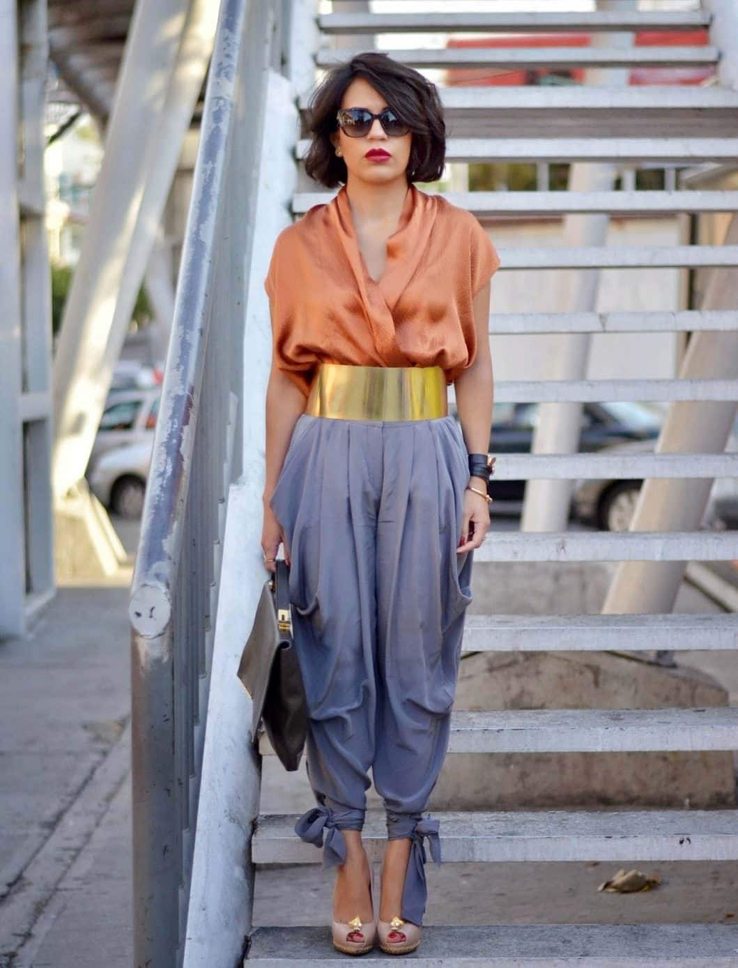 IMPORTANT! Almost any image with banana pants should be complemented by a strap or belt. That is why it is better to choose the top rather tight-fitting, which can be easily tucked into pants.