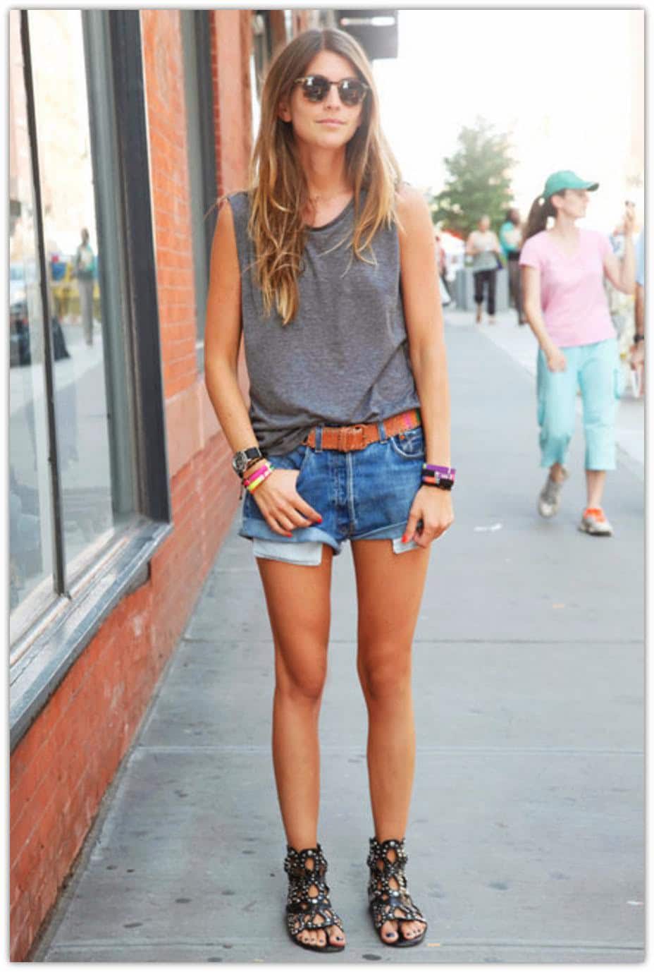 Combinations of short shorts and sandals on a platform with a wedge look amazing. However, this option is only suitable for slim girls with beautiful legs.