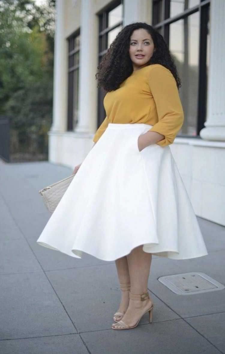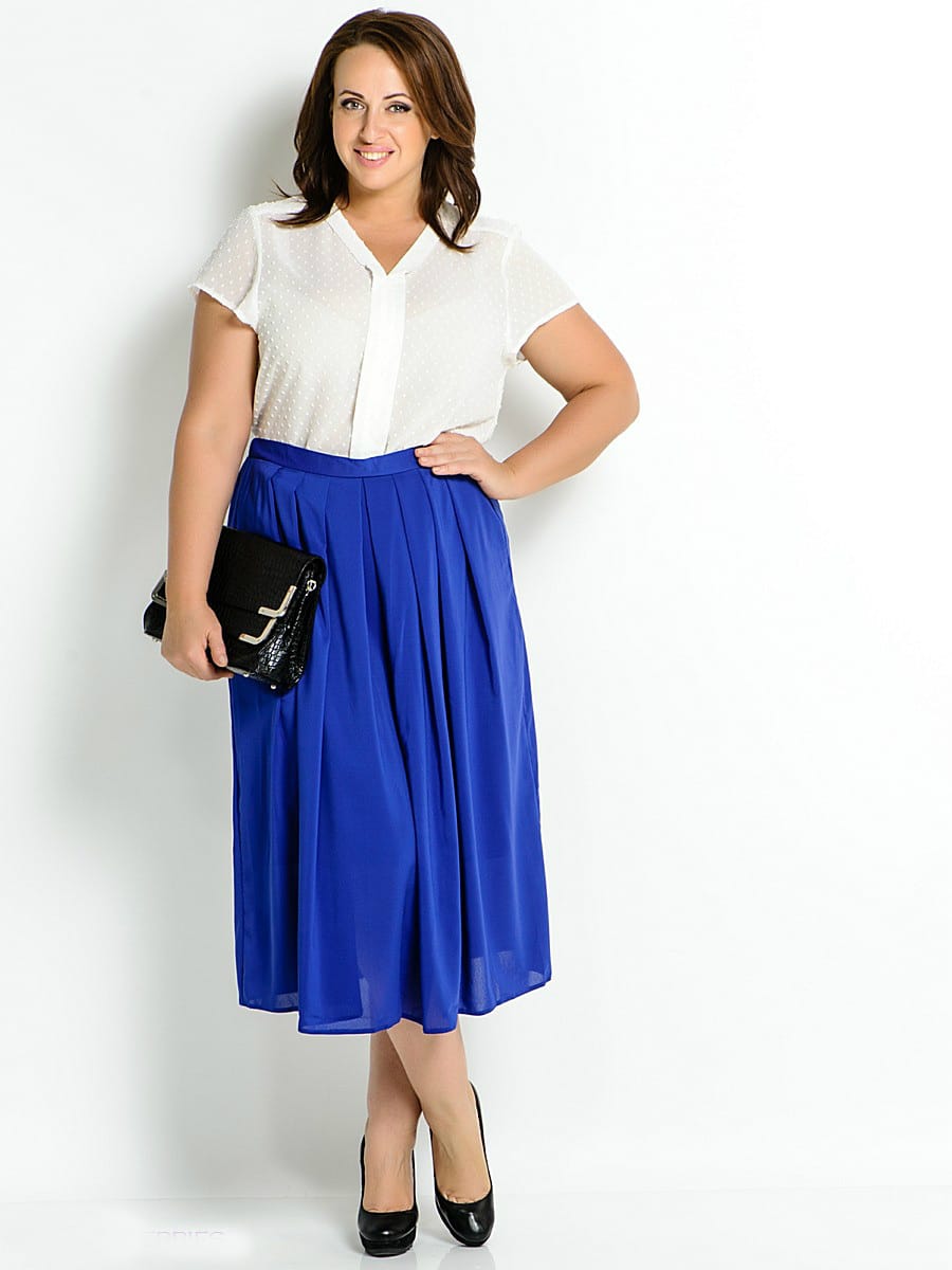 As already mentioned above, girls with the discussed forms, of course, should exclude mini skirts from their wardrobe. Also, do not opt for very magnificent skirts that will make the hem very massive.