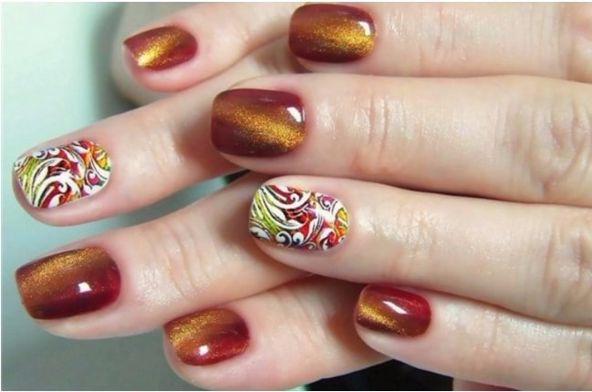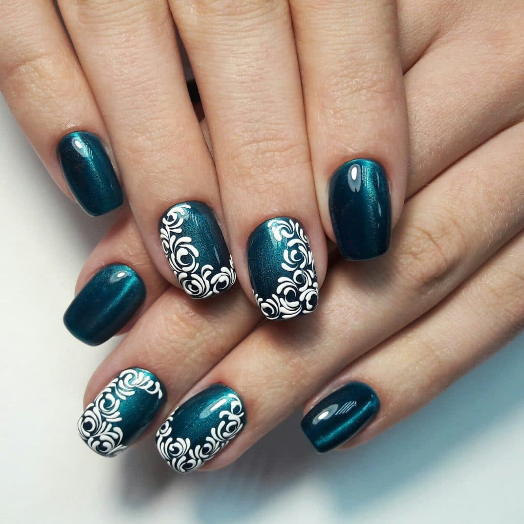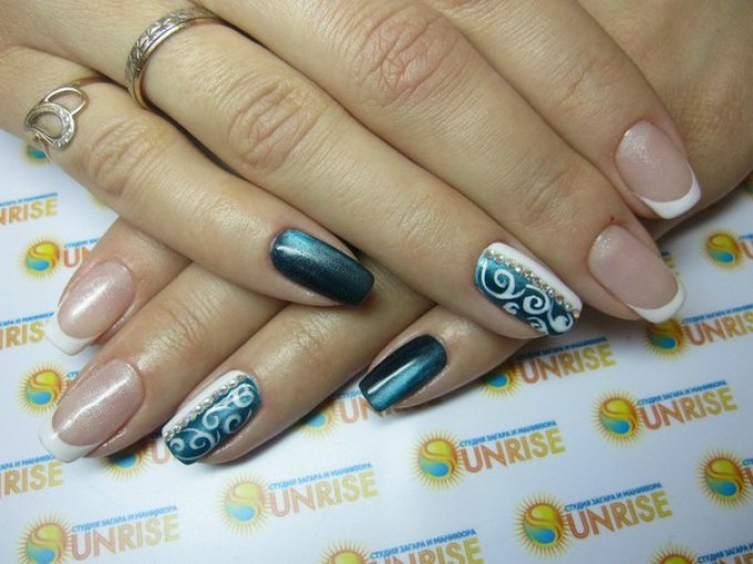 Despite its brilliance and brightness, nail designers masterly combine decorating elements with it.