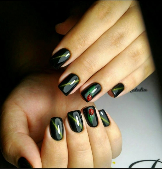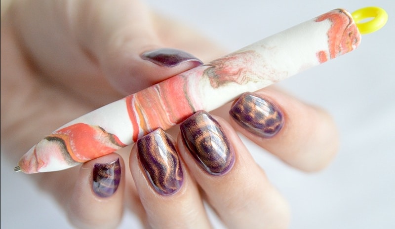 When manicuring with regular varnish you will not have any problems. Prepared nails - put a layer of varnish, brought a magnet. After the formation of the pattern, the varnish was dried and opened with a fixative. Wonderful manicure is ready!