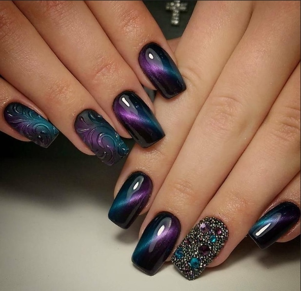 Artistic fantasy allows you to create wonderful and mysterious overflows with delightful patches of decor on long nails at the same time, without whitewashing the riddle and short brightness.