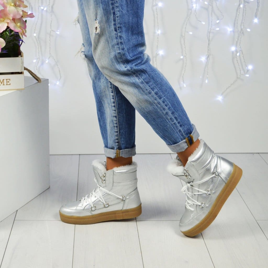 Such shoes are very harmoniously combined with a coat of gray and brown tones, as well as with a similar color metallic jackets and down jackets. Under the outerwear you can wear a beautiful maxi dress, preferably of some cool color.