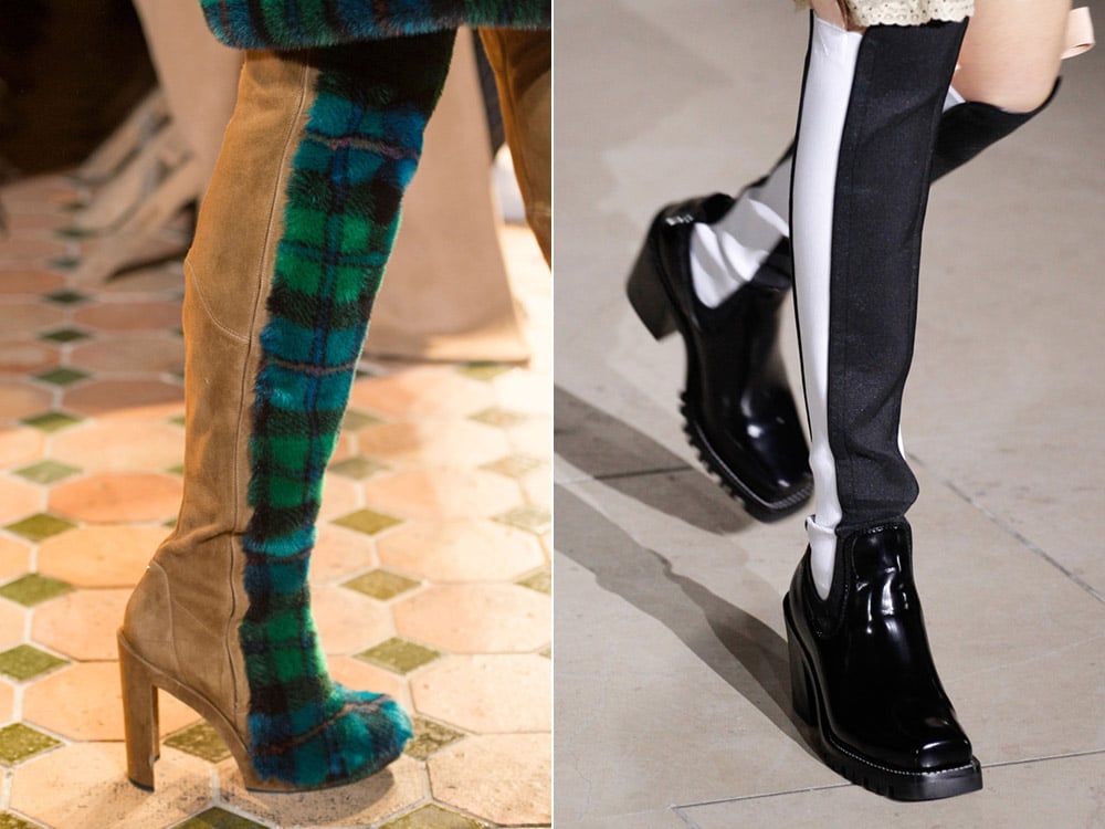 So this season, stylists offer us to wear tone-on-tone shoes with trousers, a skirt or outerwear. Creating such an image is quite problematic in everyday life. And he looks, by the way, very peculiar.