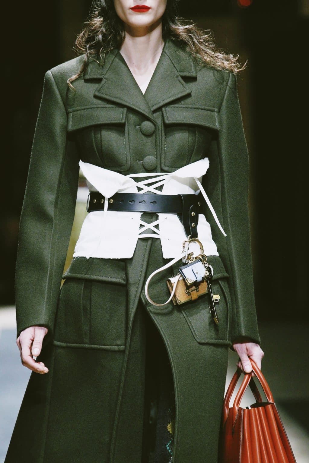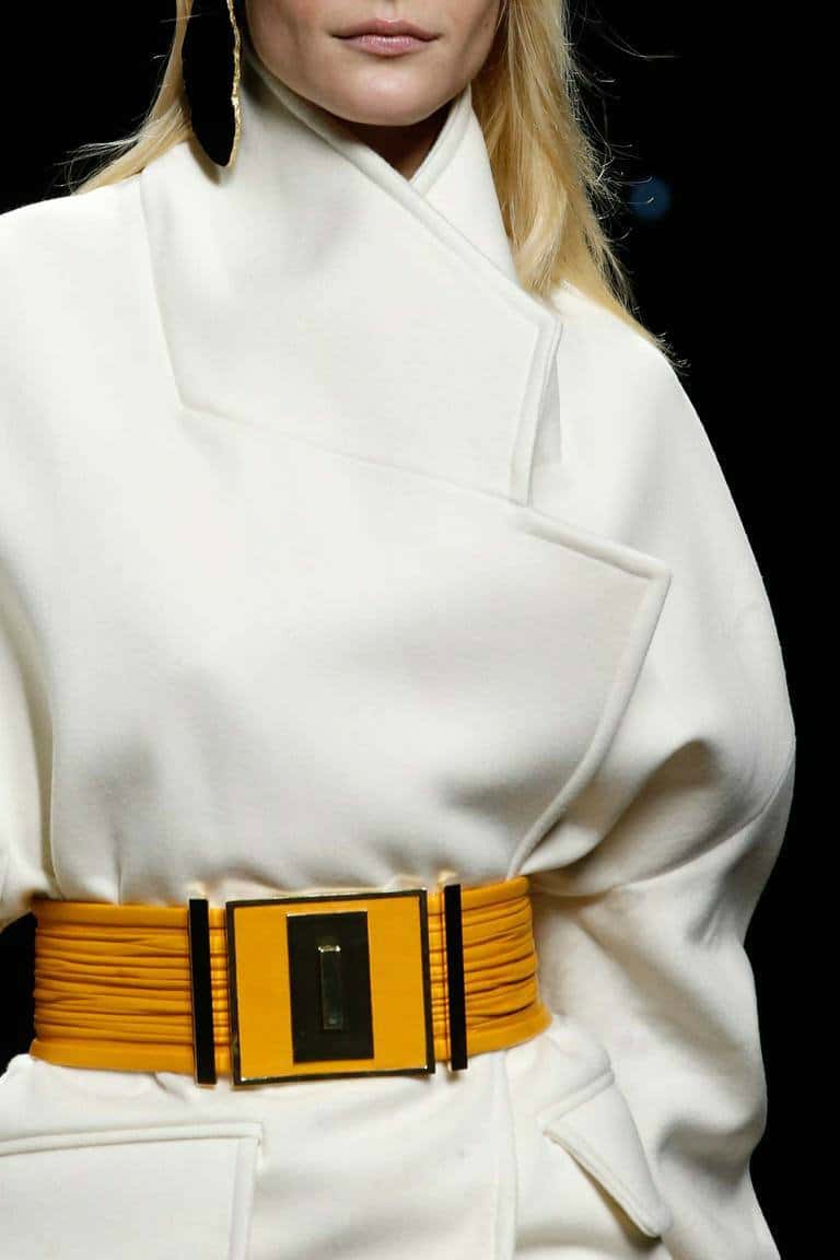 Some designers offer options for belts more reminiscent of a corset. Material is of course preferable to leather. With decor, the smaller the better. Minimalism in all its glory.