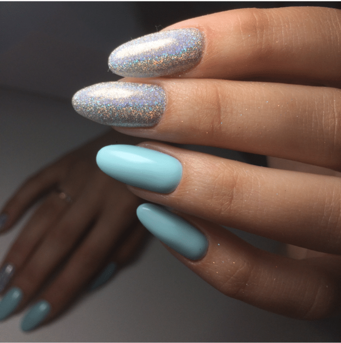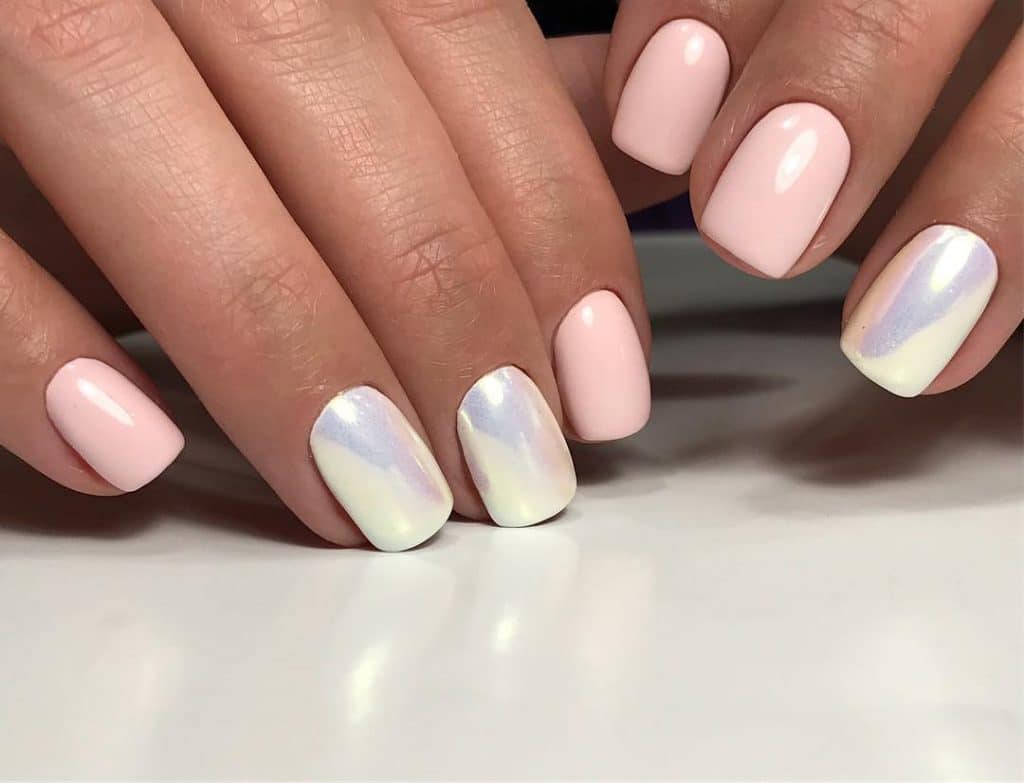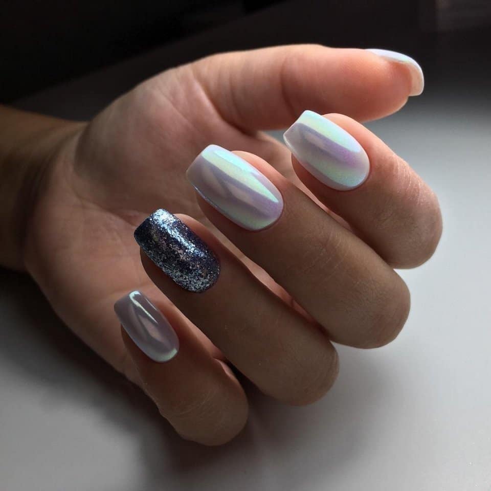 Aurora Borealis is another type of fashionable secret this season. Thanks to her, your nails will find a slight flicker. Perfectly combined with any color gel polishes.