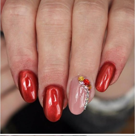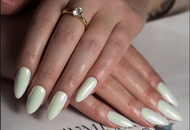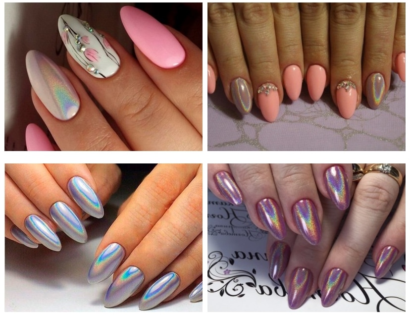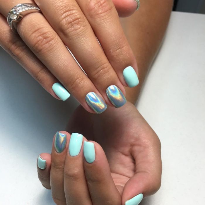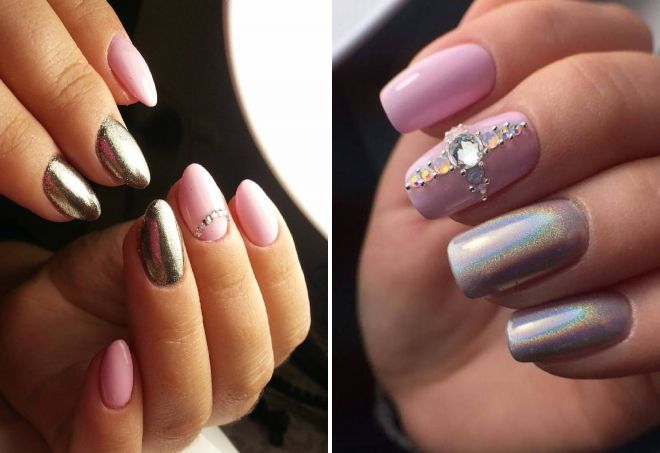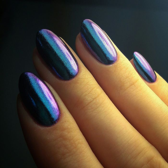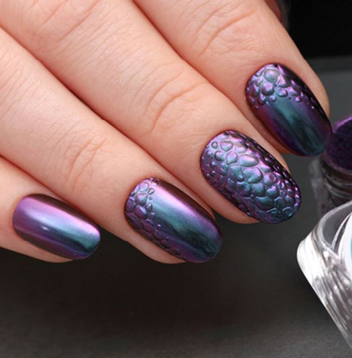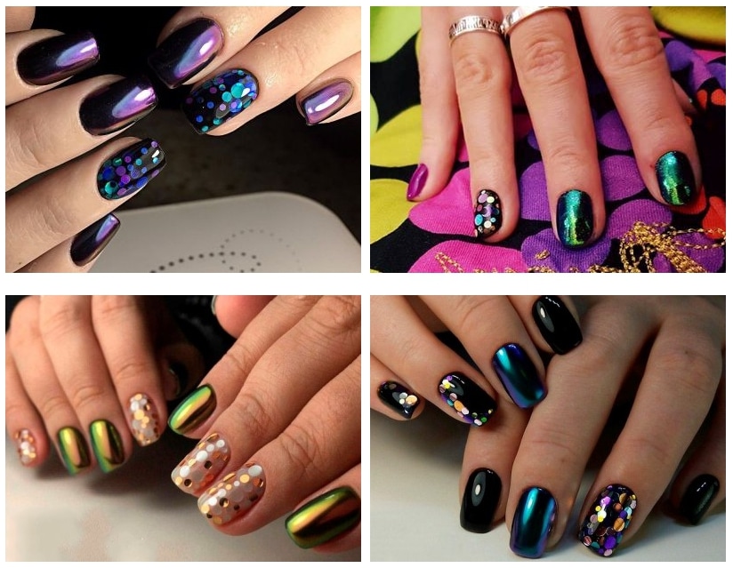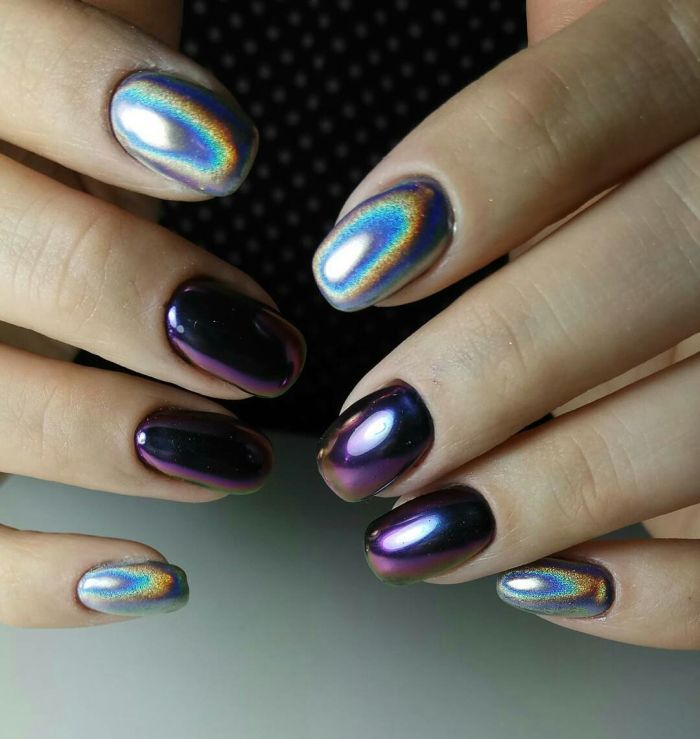 This type of nail art will give your nails a mirror-like depth, similarity to the metallic sheen and, of course, attention from others. With it you will shine equally at work and at an evening reception.
