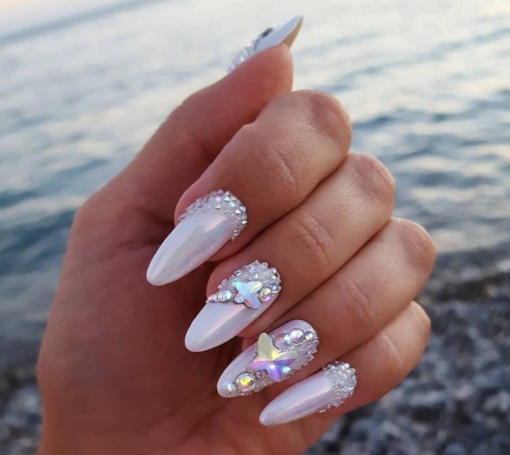 “Add a little sparkle of rhinestones or shade some nails with a metallic sparkle and your perfect manicure is ready!”