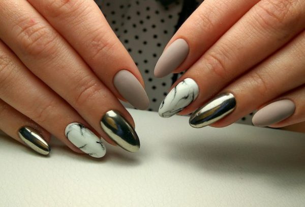 At the moment, a combination of matte and mirror manicure is very popular. Thanks to contrast and inconsistency, he quickly found his admirers.