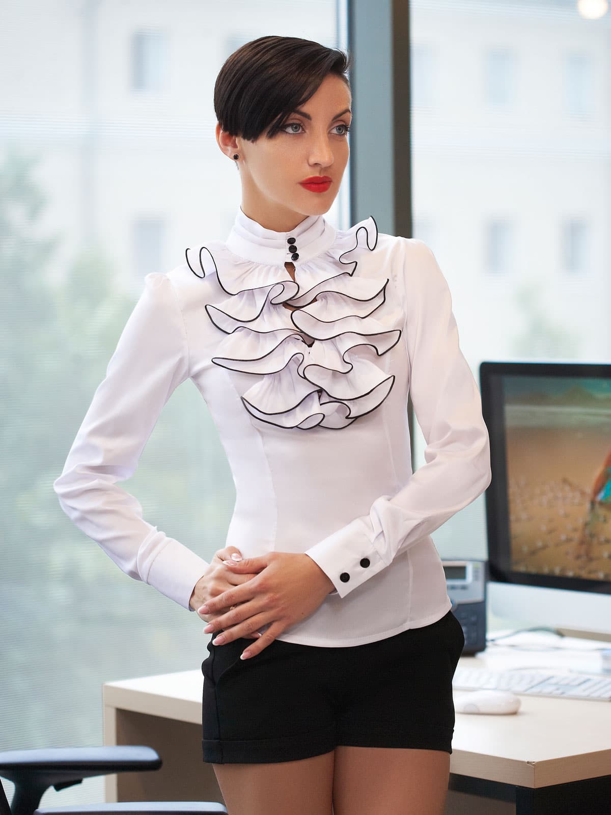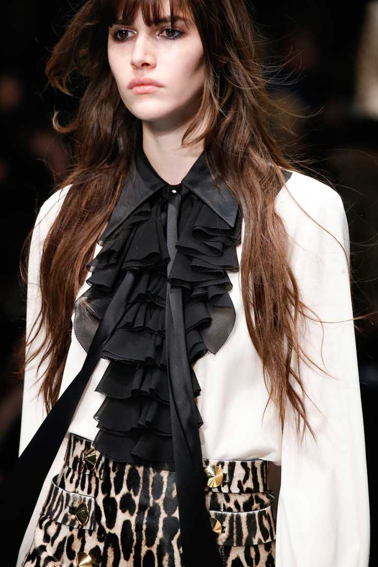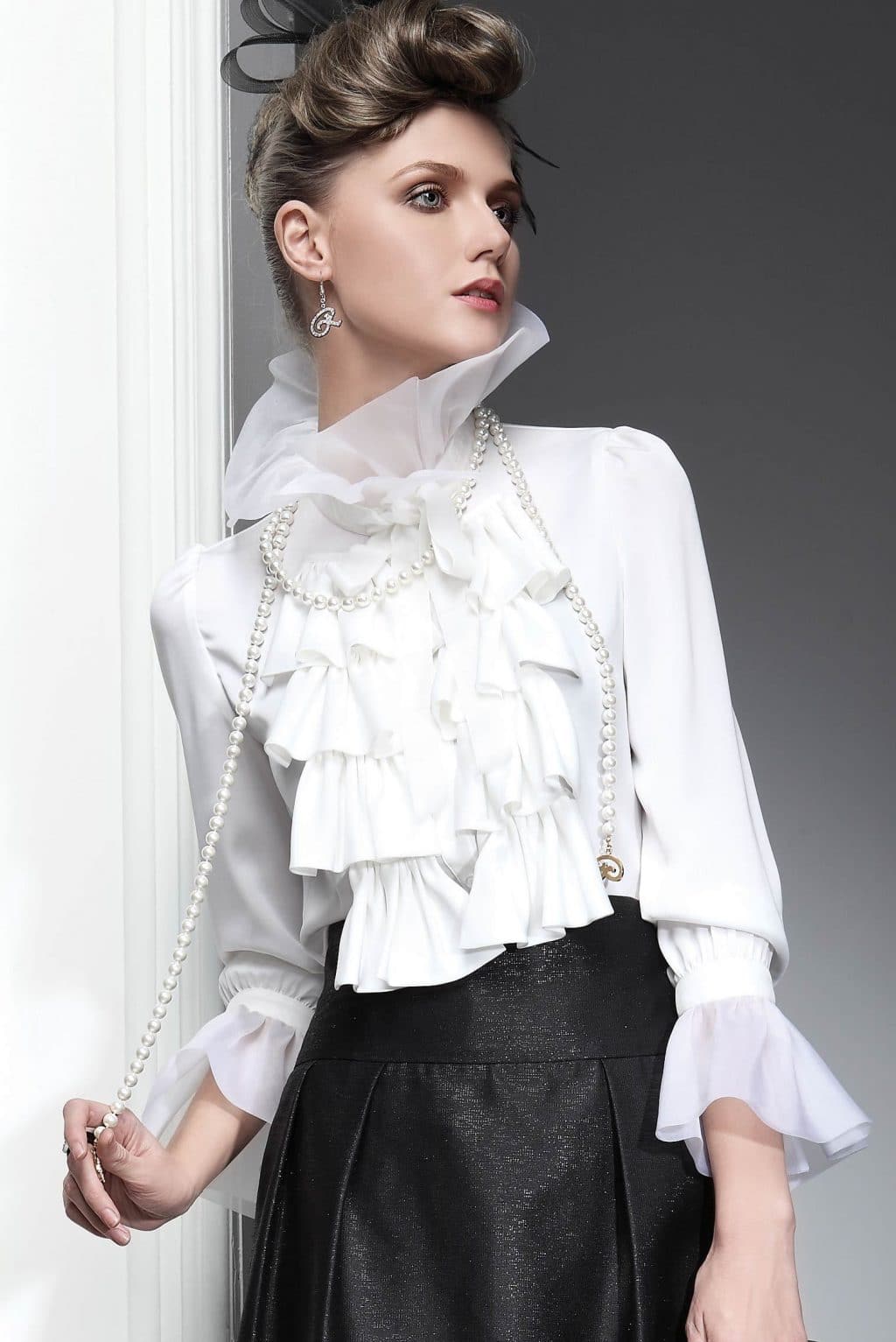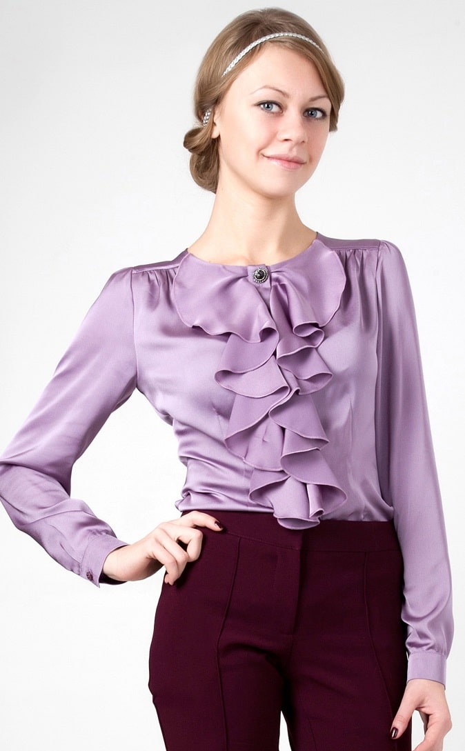 Such an element of decor originates from ancient times. And it’s more familiar to meet him in pictures in the clothes of the nobility. Their pomp creates an image of an elegant grandmother and adds to the hostess both volume and age. Choose clothes easier and you will look fresher and "easier."