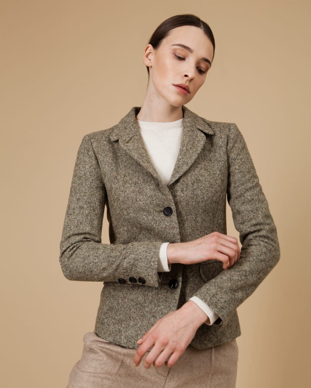 Tweed is the fabric preferred by women of mature age. A jacket made of such material, roughly distinguishing all the borders of your figure, can turn even a very young lady into a lady of not young years.