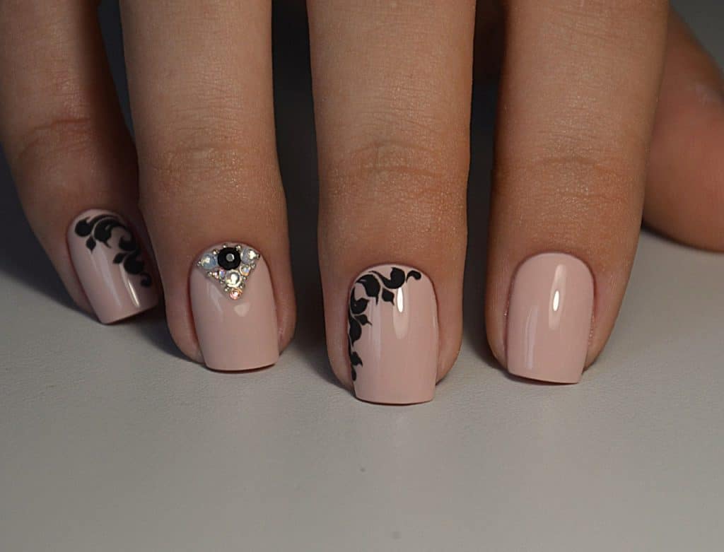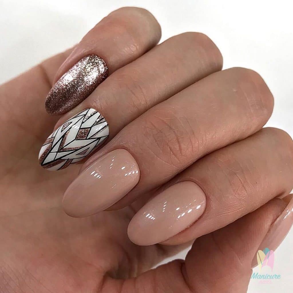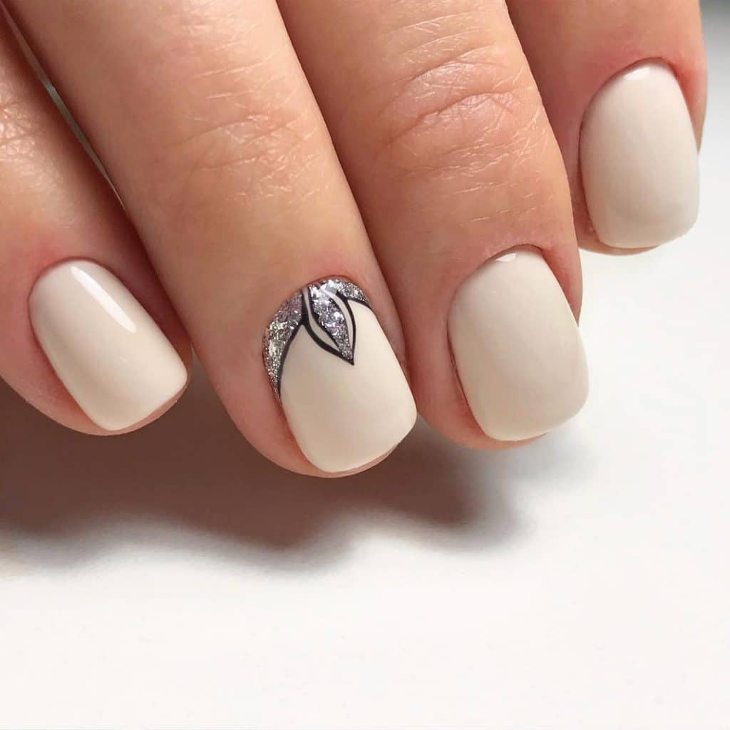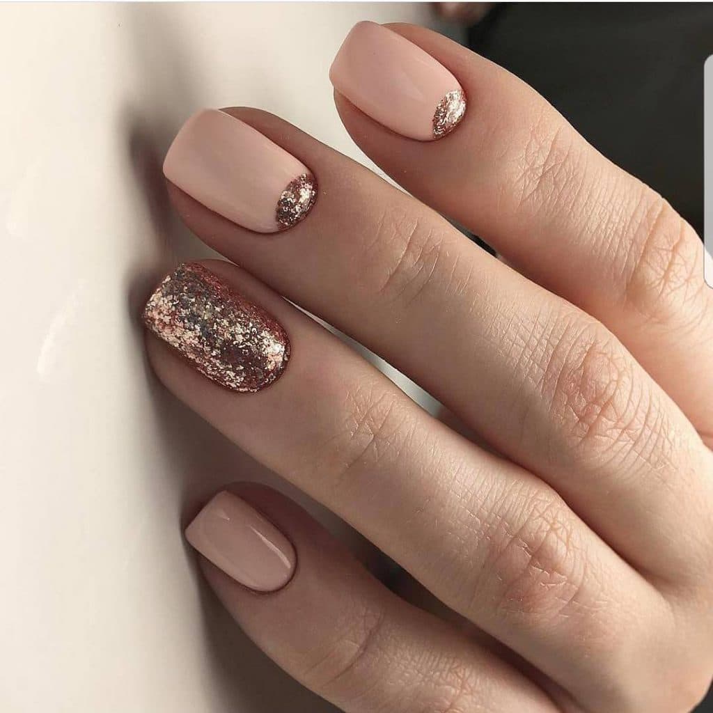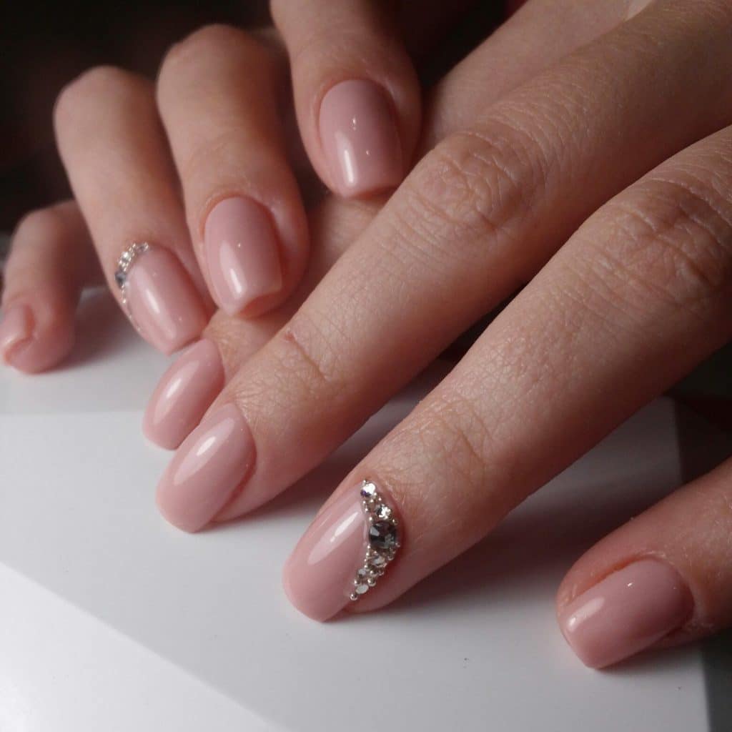 - Nude manicure is absolutely universal. With him, you can safely go to work, and to school, and for a romantic walk. Adding a little rhinestone or sparkles to the nude design, you can safely go to meet the most important holiday in your life.