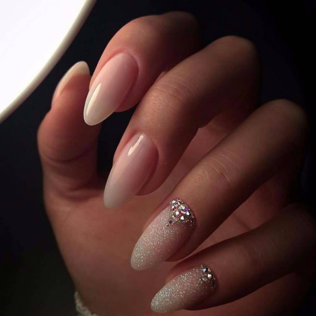 Complementing the gradient nude manicure with rhinestone or sequin decor, you can create a truly festive and luxurious look.