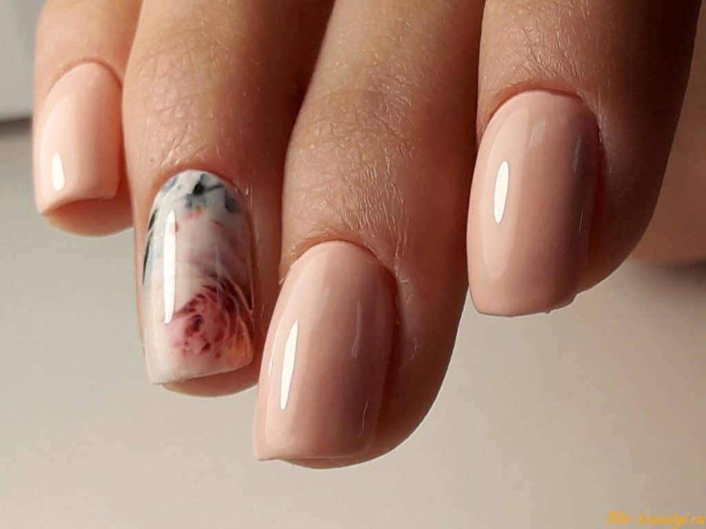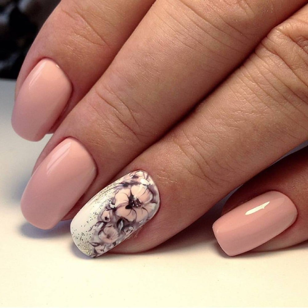 It is impossible not to pay attention to the nude manicure with a picture. Here, a whole field for creativity unfolds, on which nail service masters compete in their art of drawing. This manicure looks really gorgeous!