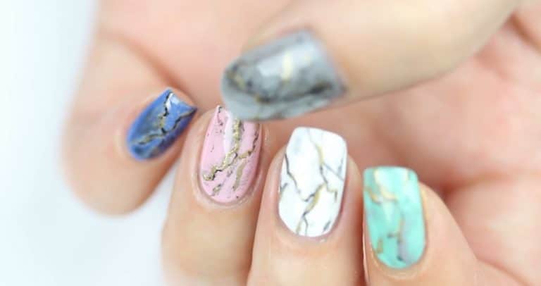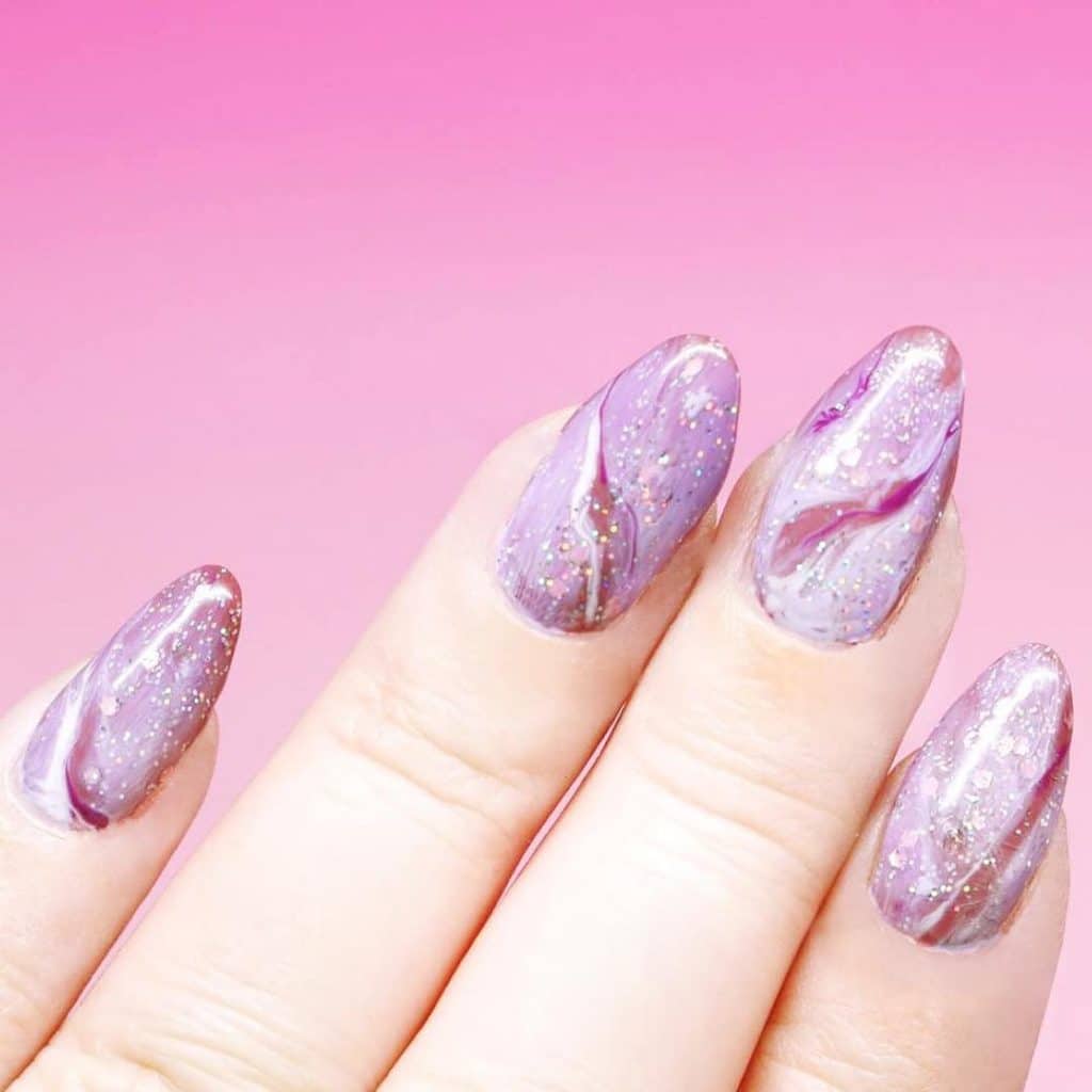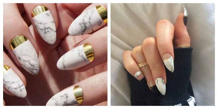 Today we will consider a relatively new trend in the nail art "Marble Manicure". The beautiful texture is very similar to marble, and in combination with various soft shades and sparkling veins creates a noble appearance on the nails of the owner.