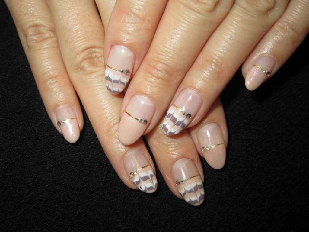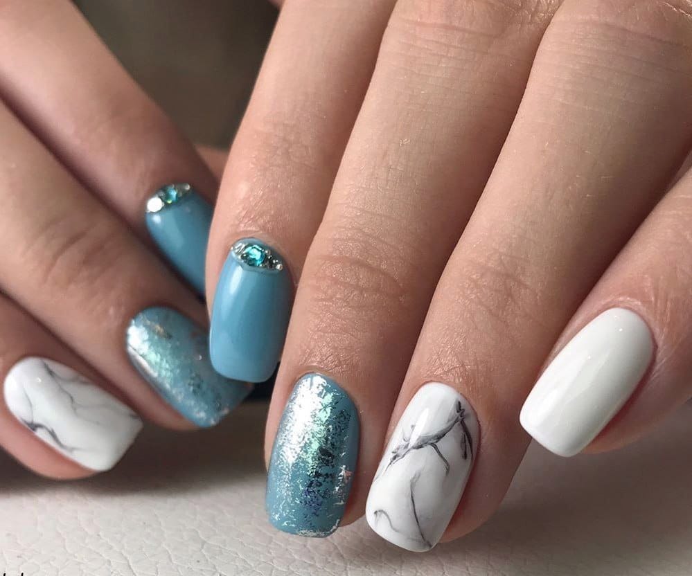 Although this area is quite conservative, the demand market gives rise to ever new options for marble manicure. Masters of nail art gently introduced new techniques and design into it. Supplemented with rhinestones, glitter, rubbing, foil. Also played a role seasonal customer needs. Let's consider some options.