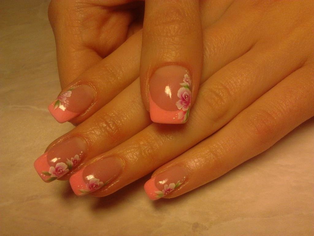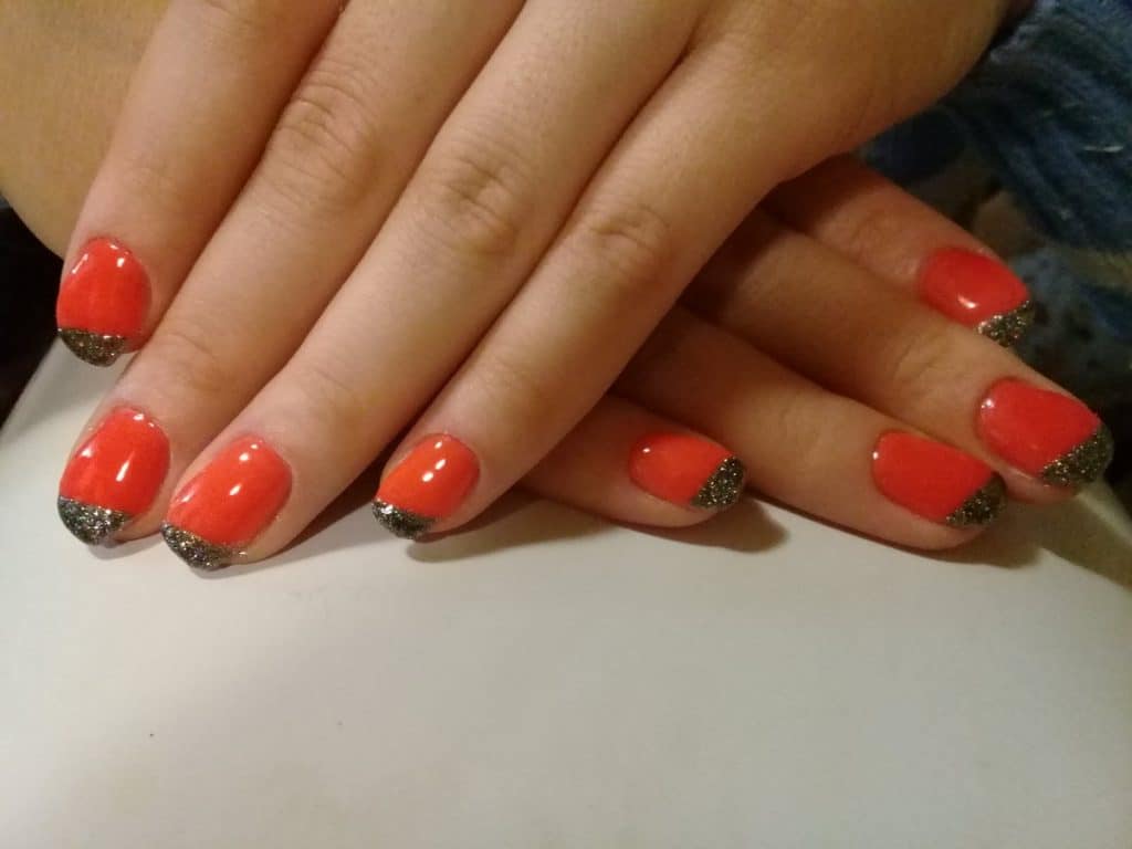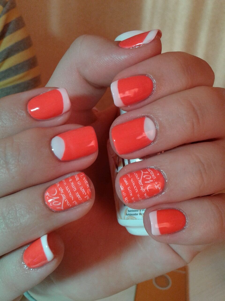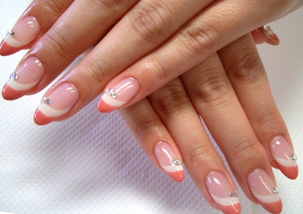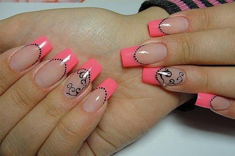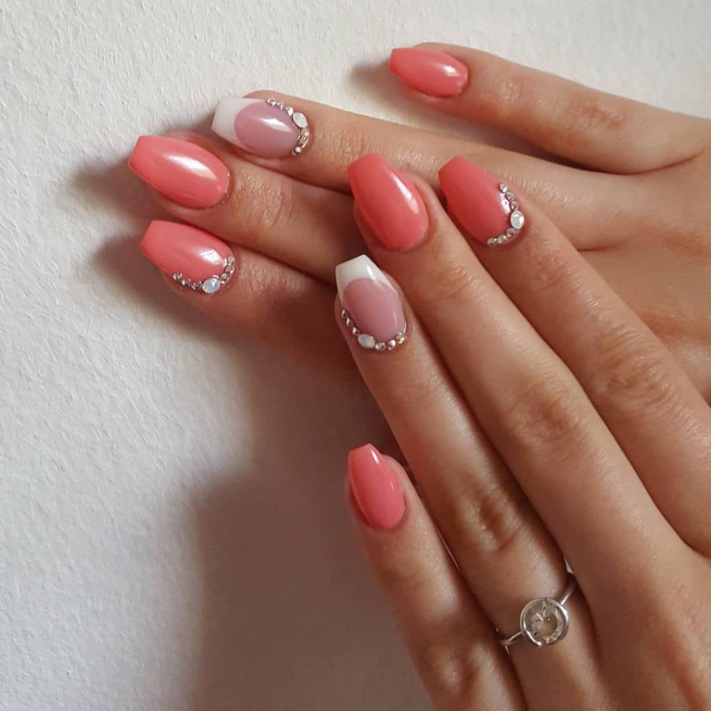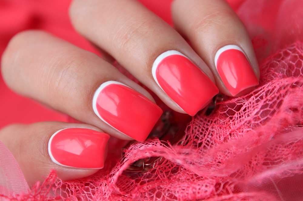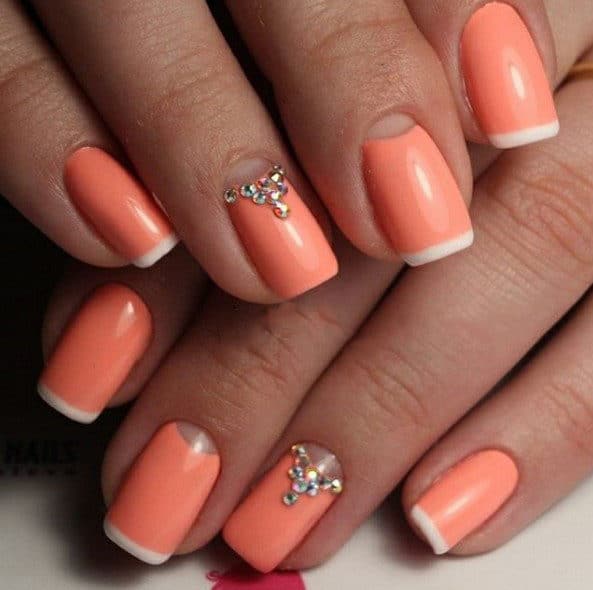 Undoubtedly, the French is a world classic. It is relevant, both on long and short nails. French on coral nails looks very well-groomed and attractive.