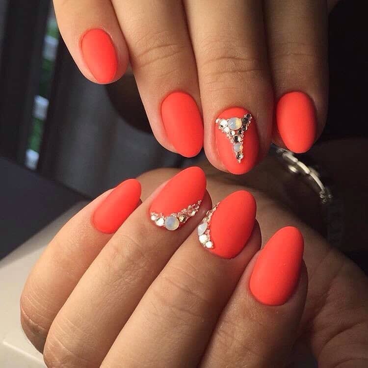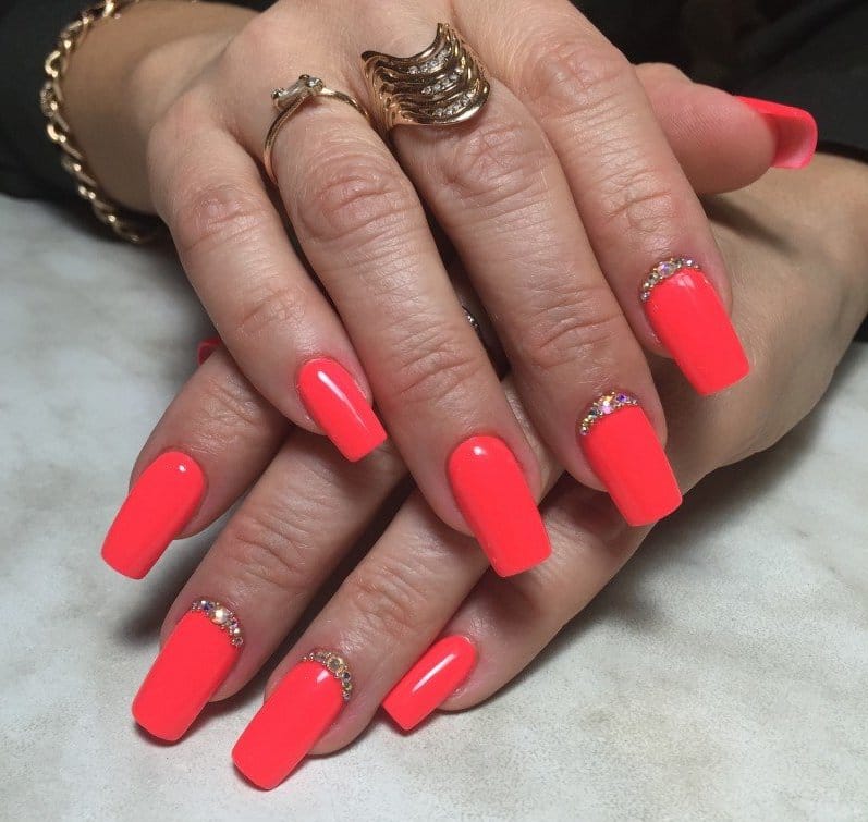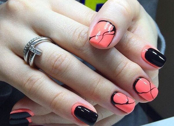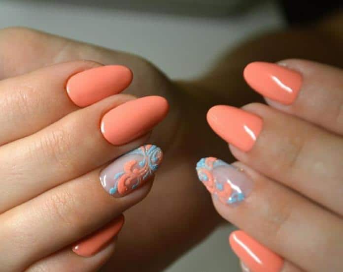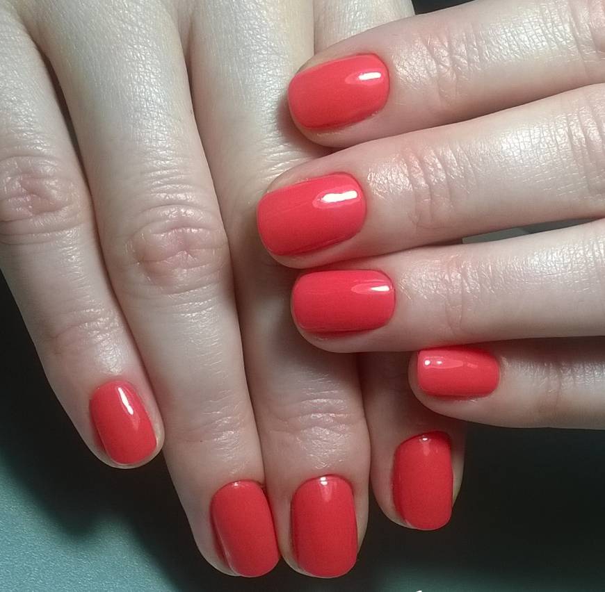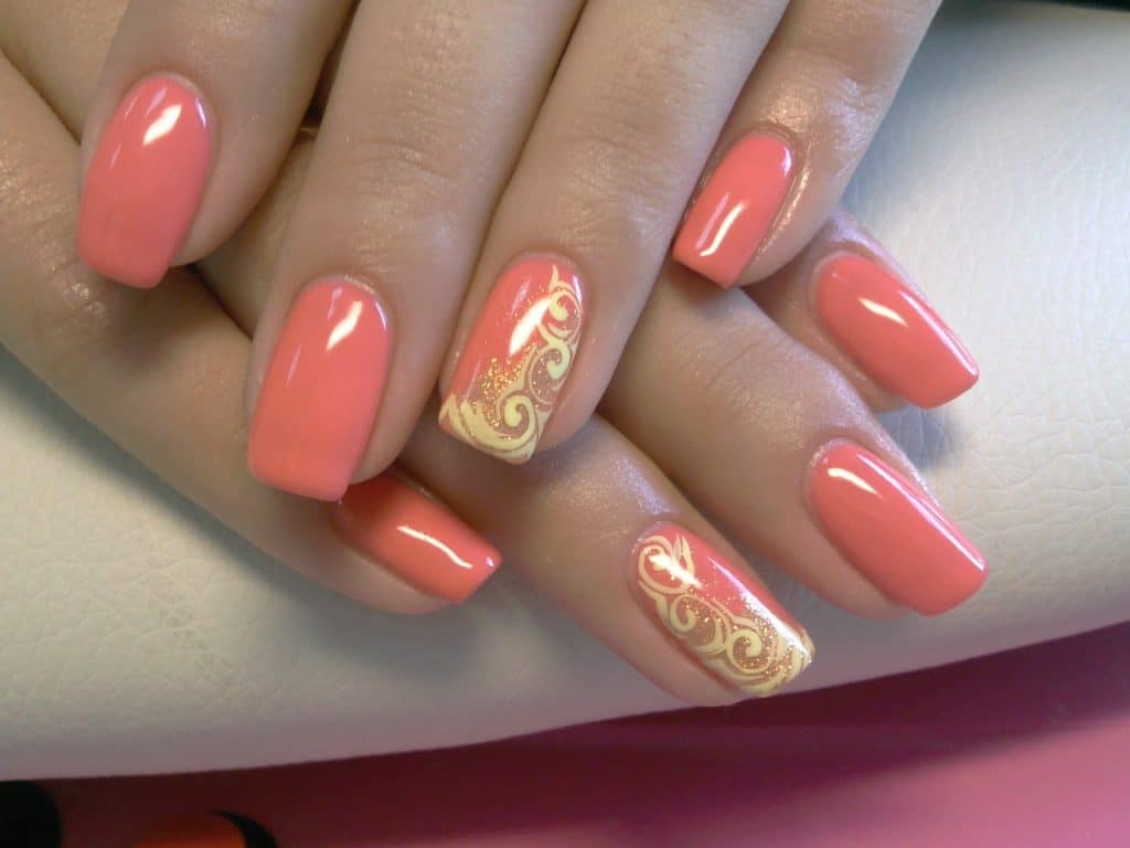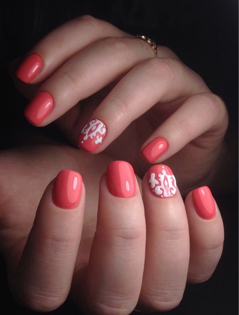 Coral manicure, this is a very bright and popular color in nail art. Many mistakenly believe that this color is purely summer. It is not true. Bright, saturated coral color, will look good on nails in winter and summer. Only need to choose the right shade. Cold are more suitable in the winter, and warm in the summer.