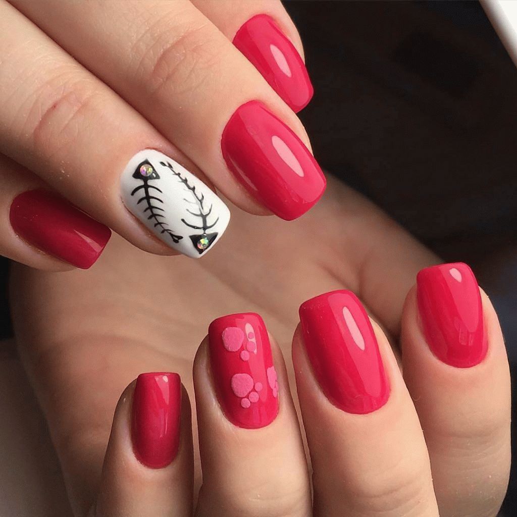 The drawing will never go out of fashion and will always look actual on your nails, especially on a bright coating.