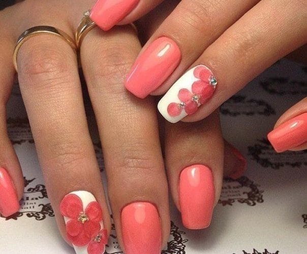 The combination of pink and juicy red pigments form a coral color. Nails with such a coating will attract increased attention from the outside. Let's consider what types of coral manicure are and what is better to combine with such a bright color.