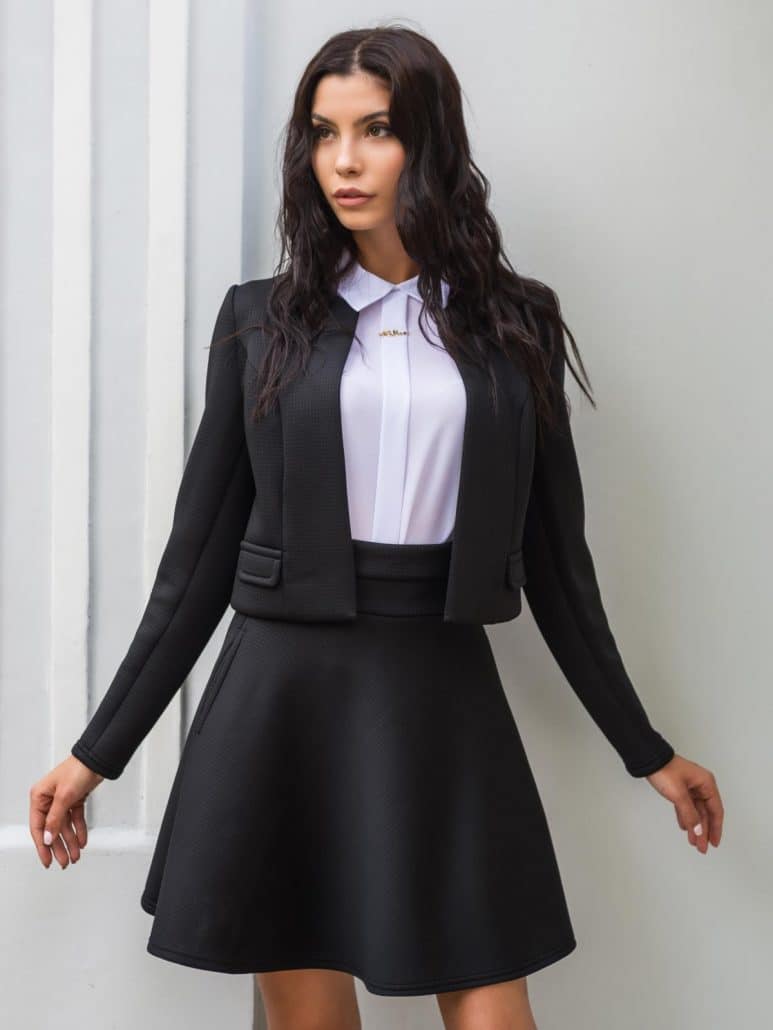 The jacket does not always fit this or that thing in the women's wardrobe. Different cut, material, all this is not easy to combine with wide skirts or other types of skirts. But now we will consider the options in which cases the jacket looks successful.