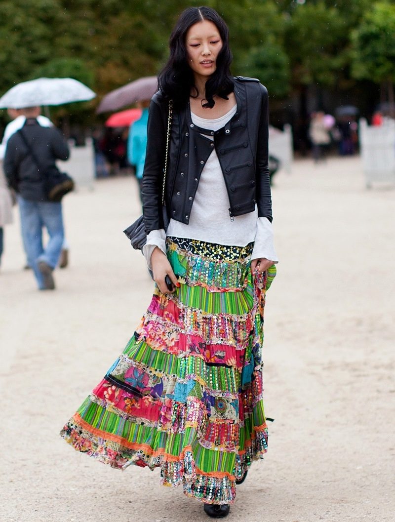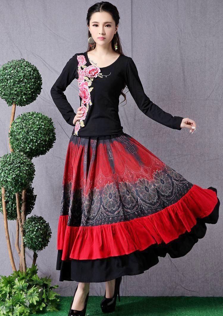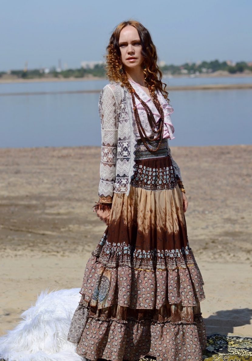 This type of skirt is very bright, saturated and attracts a lot of attention. Bright extravaganza of colors shimmers in their heavy folds. There are several types of lite versions of gypsy skirts that any girl can easily wear in everyday life.