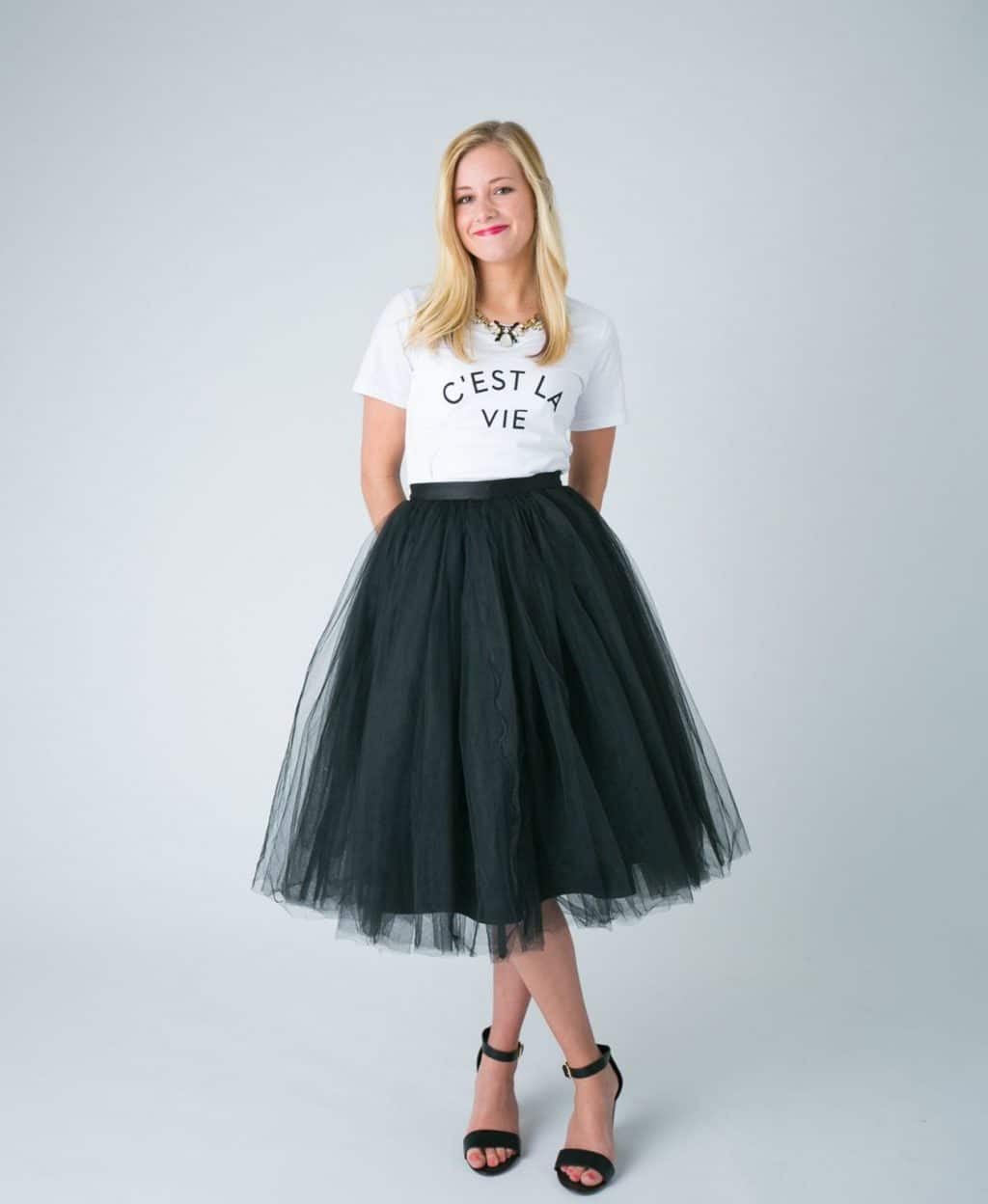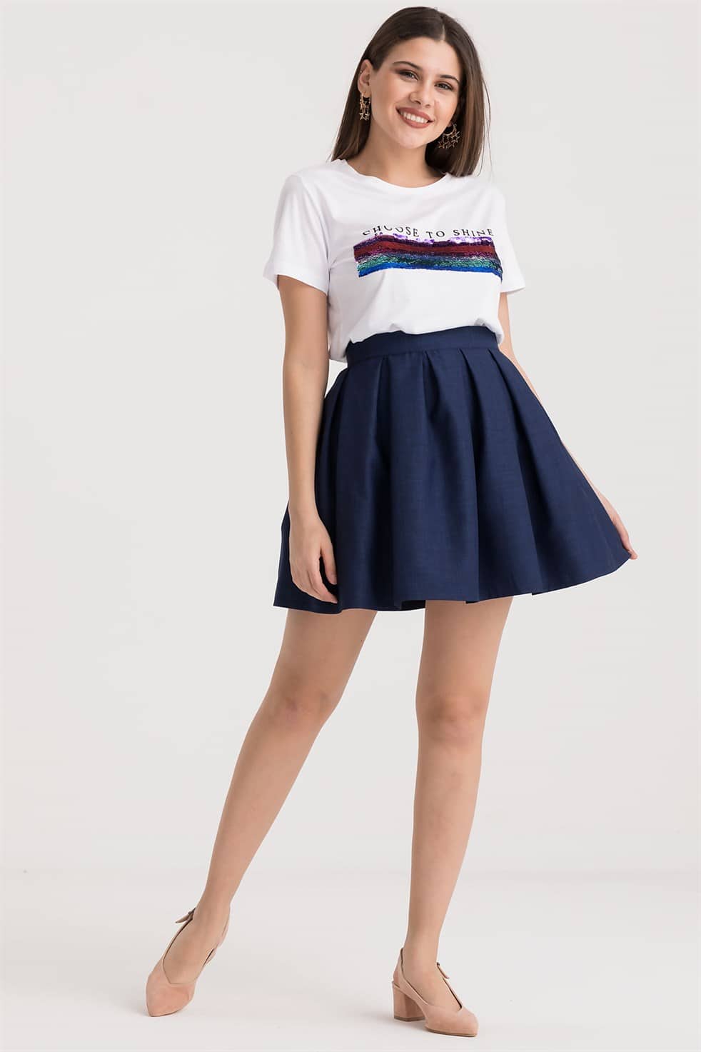 A wide skirt in combination with a light, summer T-shirt creates an especially summer mood.
