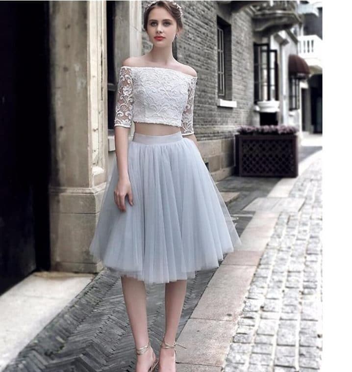 Ordinary sweaters with short or long sleeves harmonize quite well with a wide skirt. Such combination options are well suited not in hot weather, especially for leisurely evening walks.