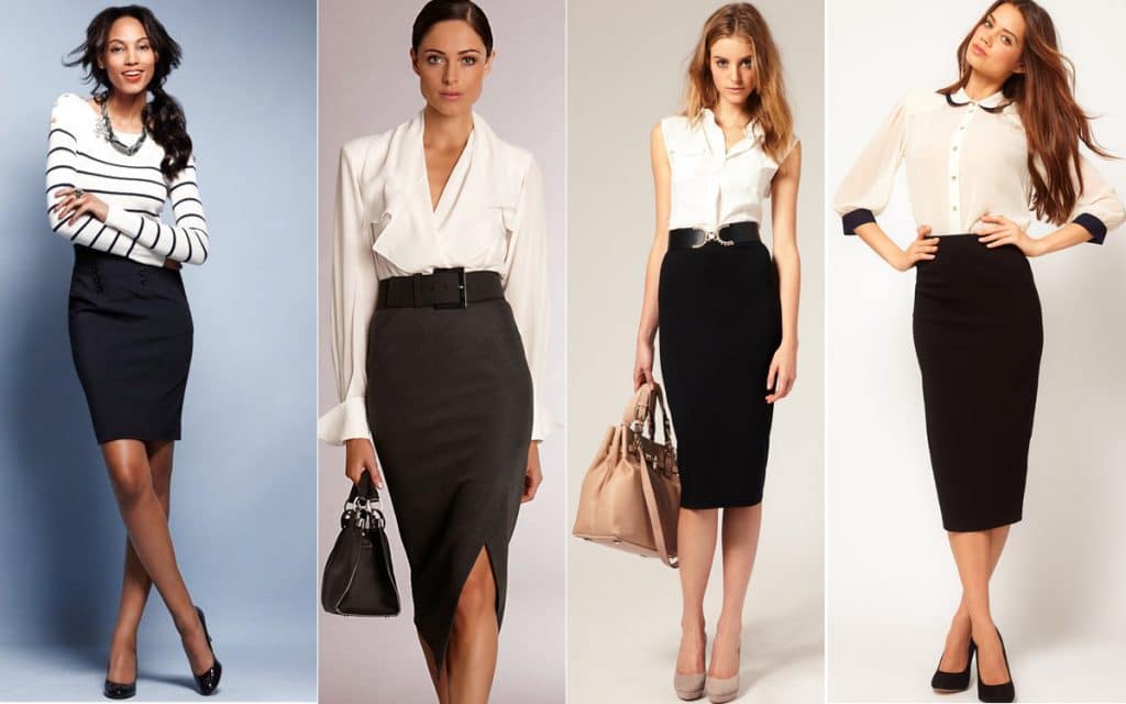 Many women prefer stylish, high skirts to regular business trousers for office work. In such a skirt in combination with a blouse of any color, the girl will look slim and respectable.