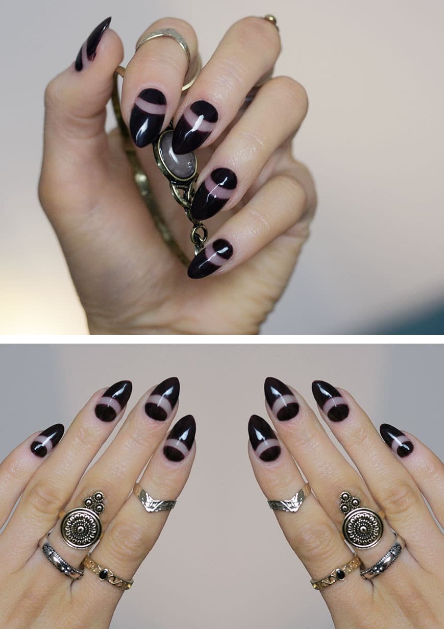 Negative space is unused (empty) areas on the nail plate, most often simply covered with a base and top.