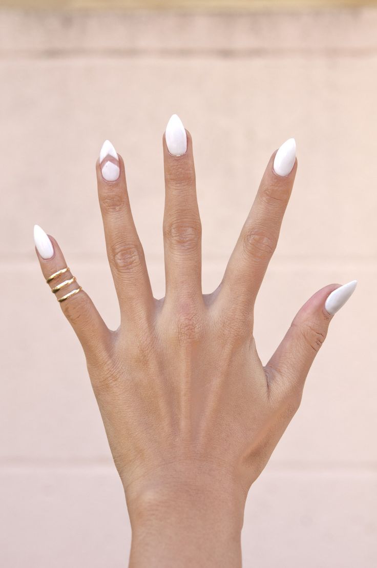 An almond-shaped manicure is ideal for women with short fingers, as it visually lengthens them.
