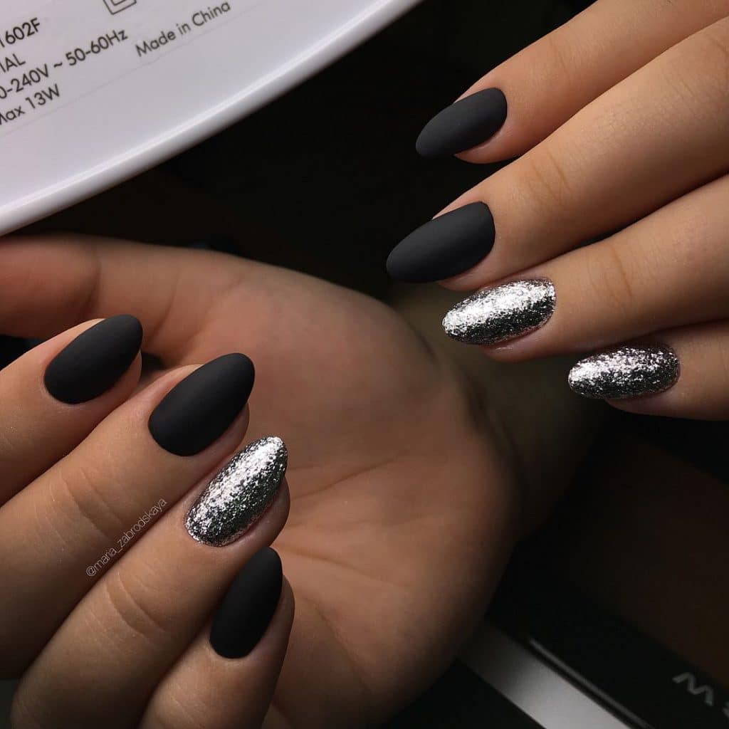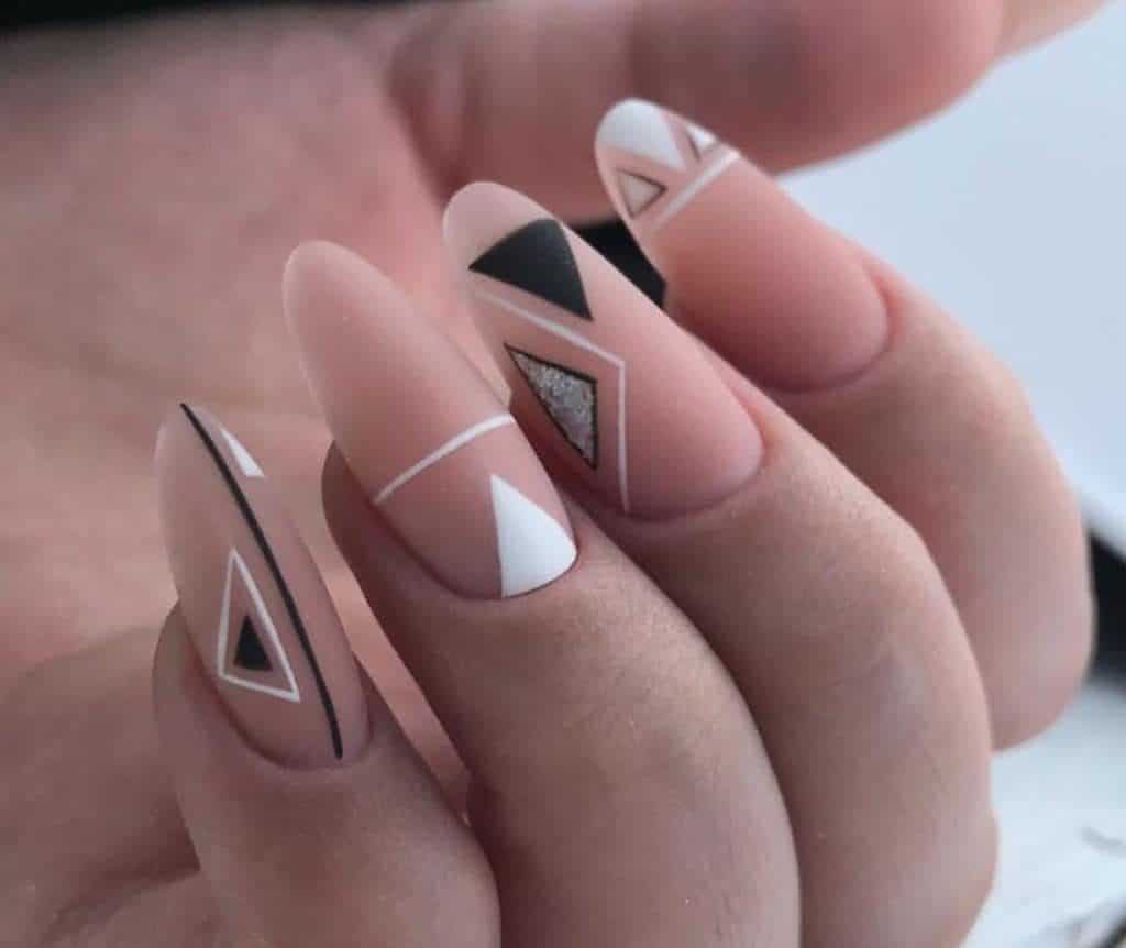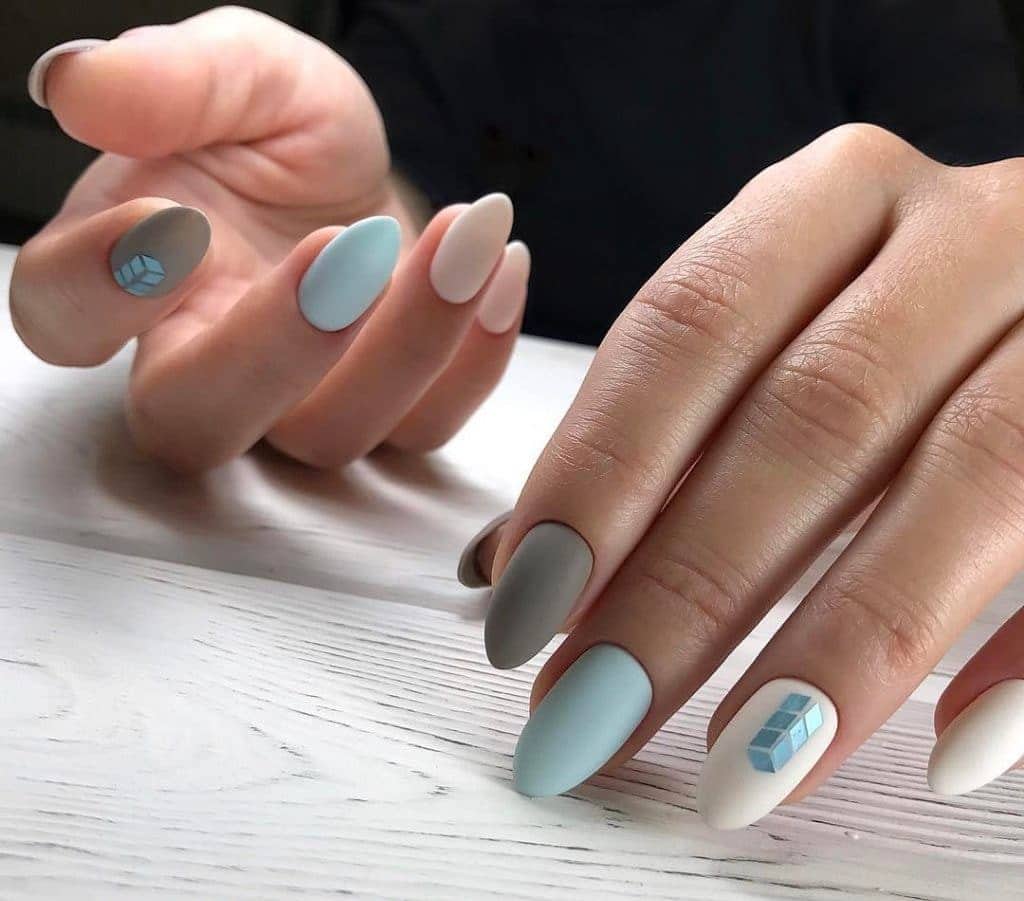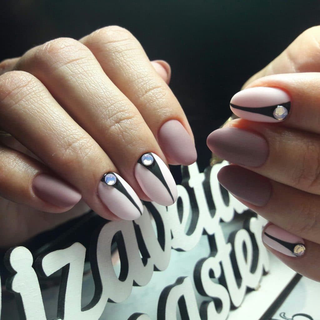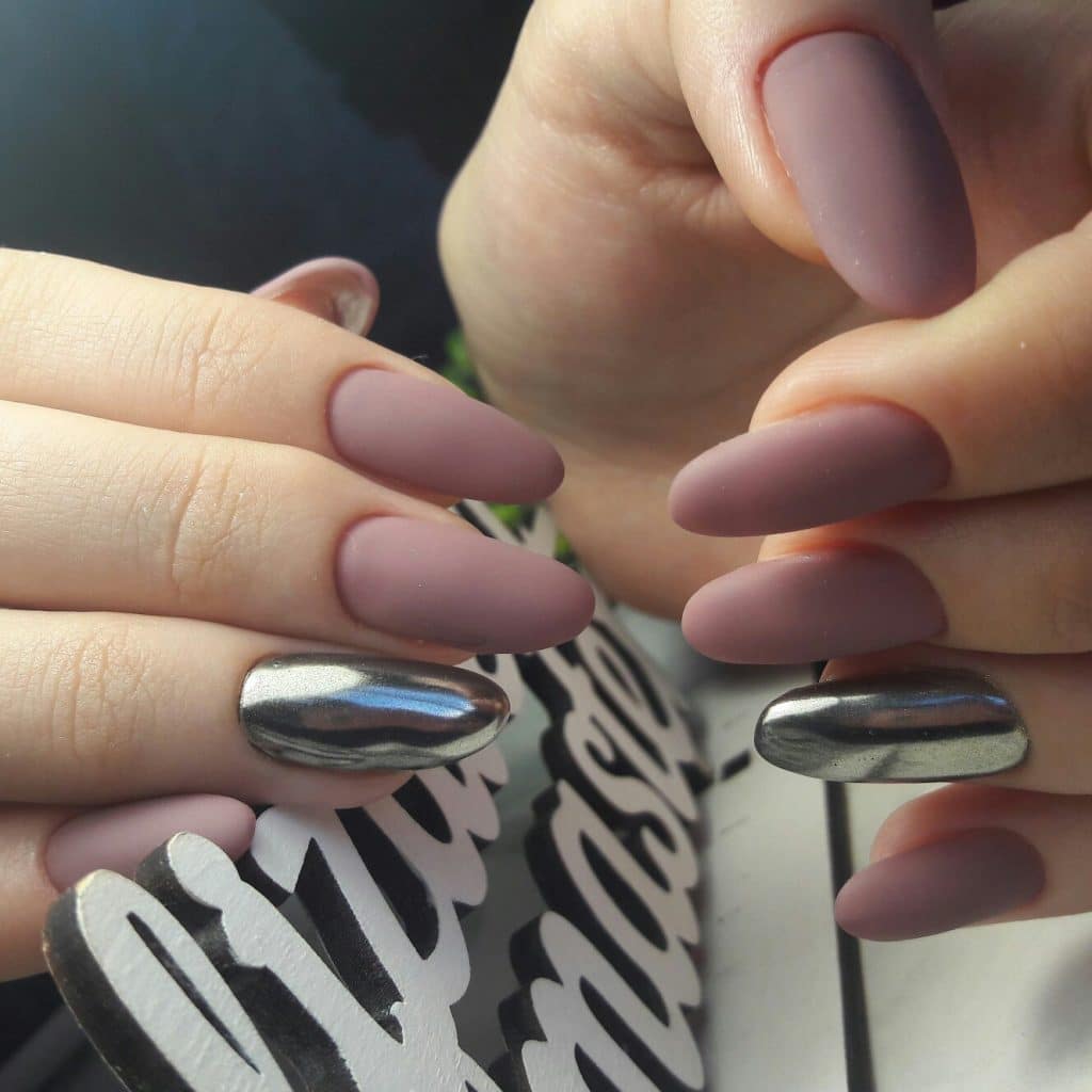 Well, lastly, some stunning stylish ideas for manicure on almond-shaped nails. Here we could not help but stop at a matte design - increasingly gaining popularity, a stylish geometric manicure and a minimalist trend with an emphasis on one nail.