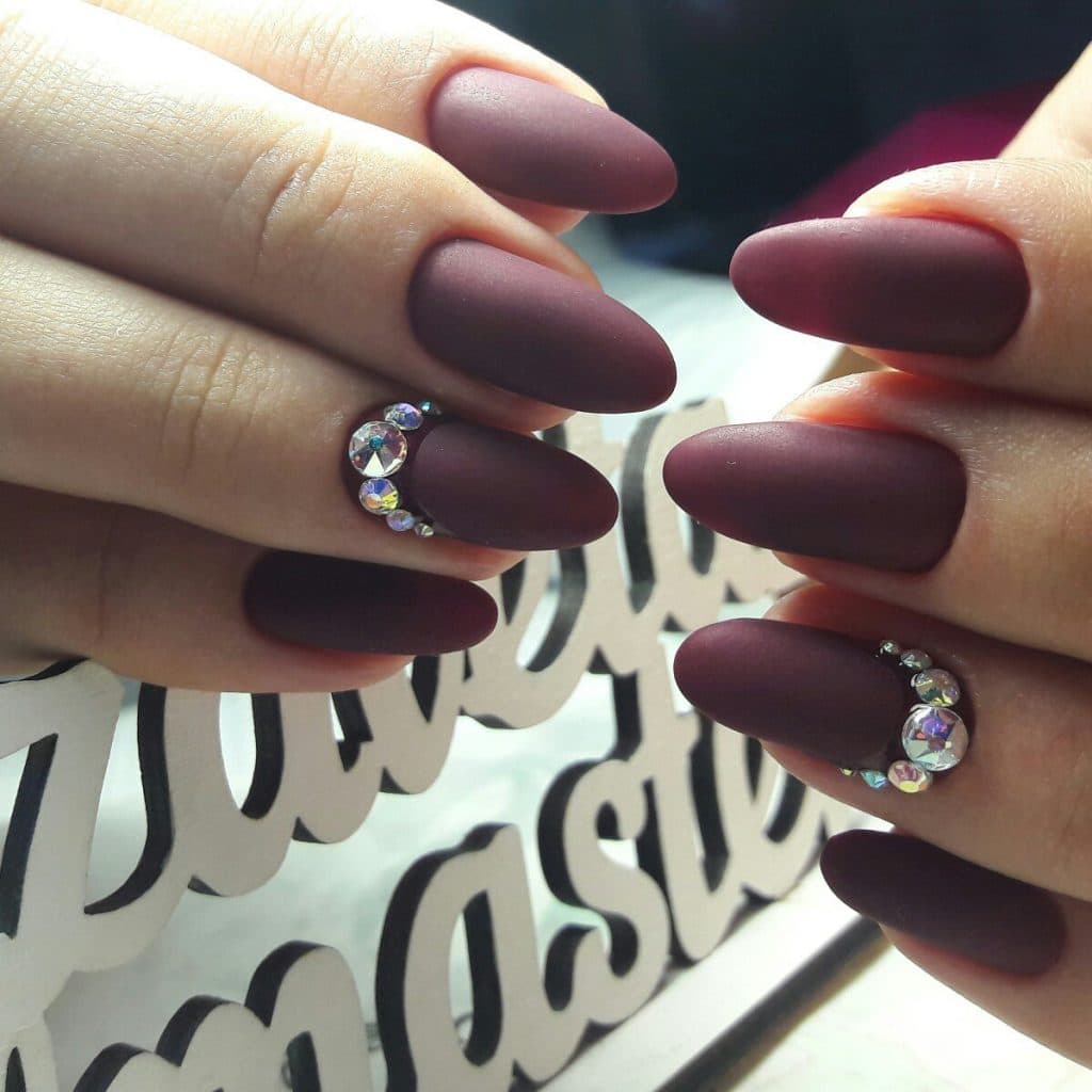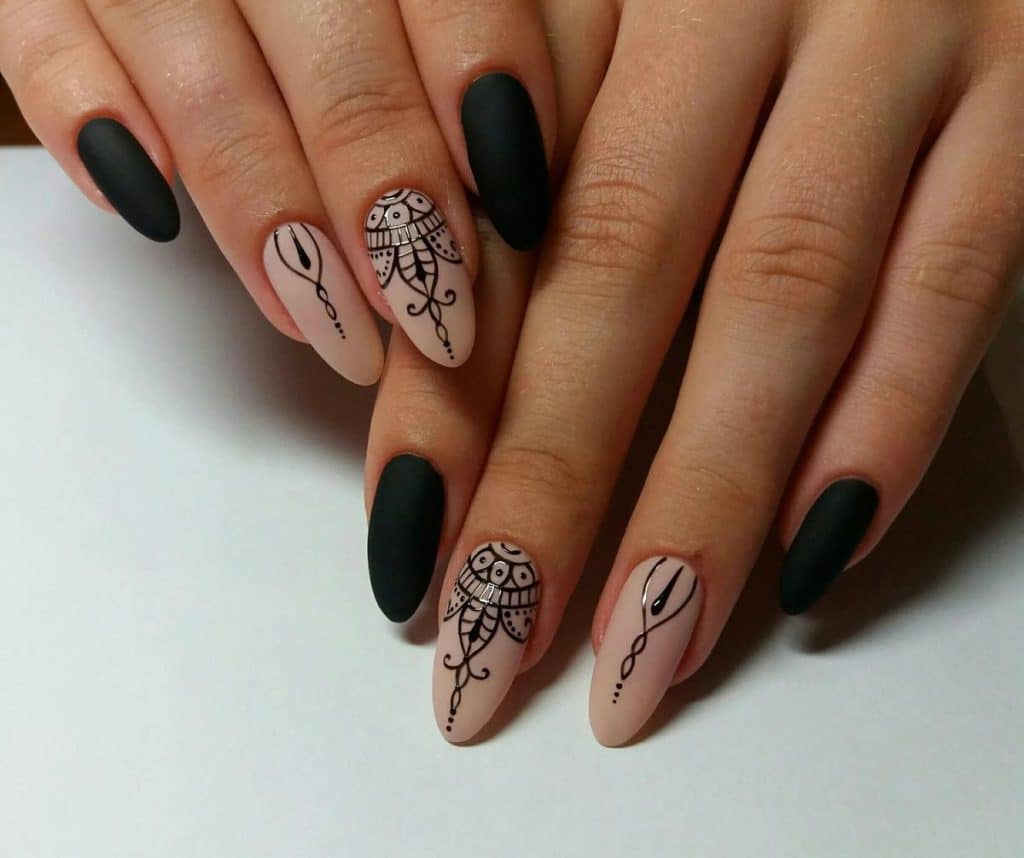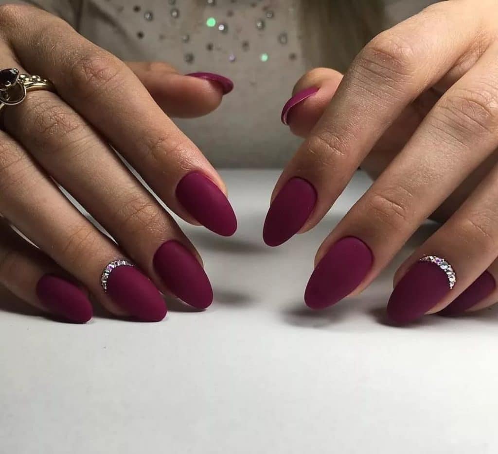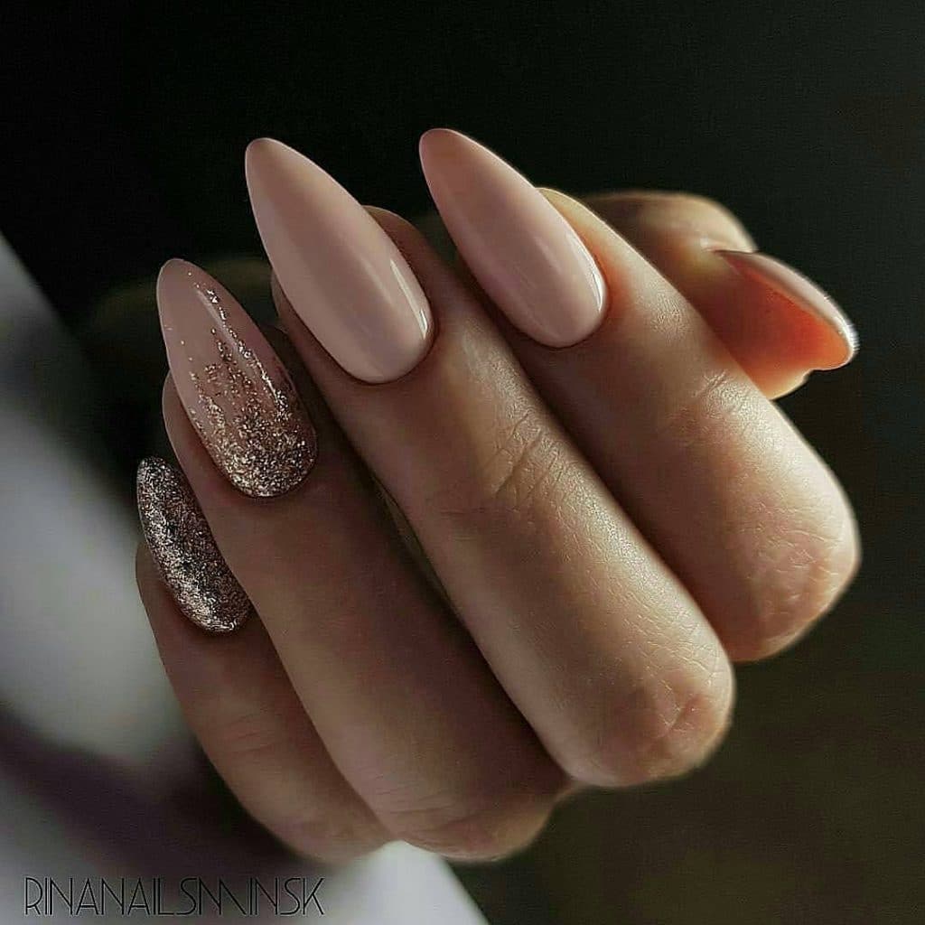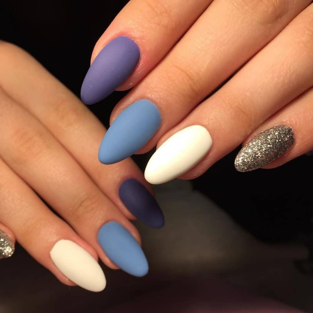 Well, lastly, some stunning stylish ideas for manicure on almond-shaped nails. Here we could not help but stop at a matte design - increasingly gaining popularity, a stylish geometric manicure and a minimalist trend with an emphasis on one nail.