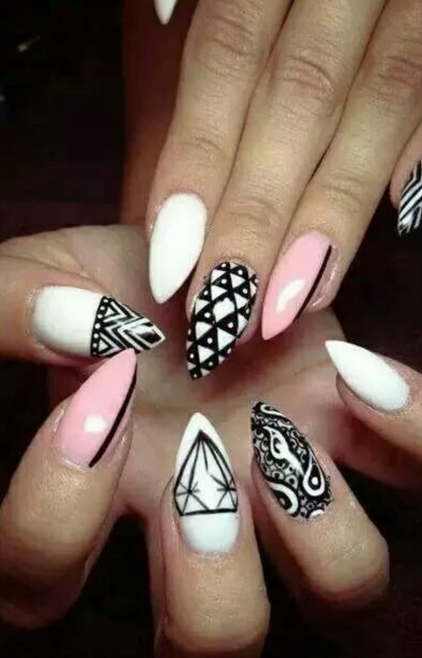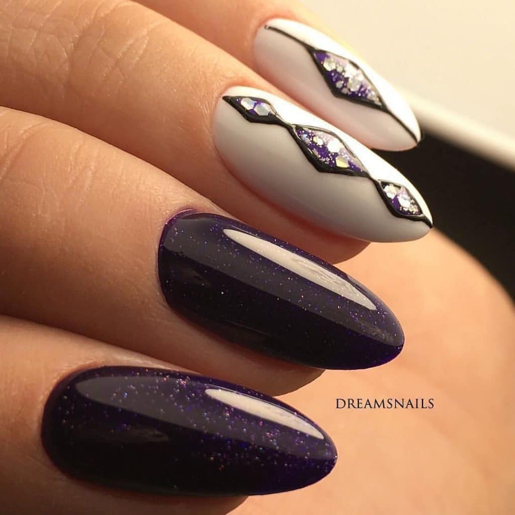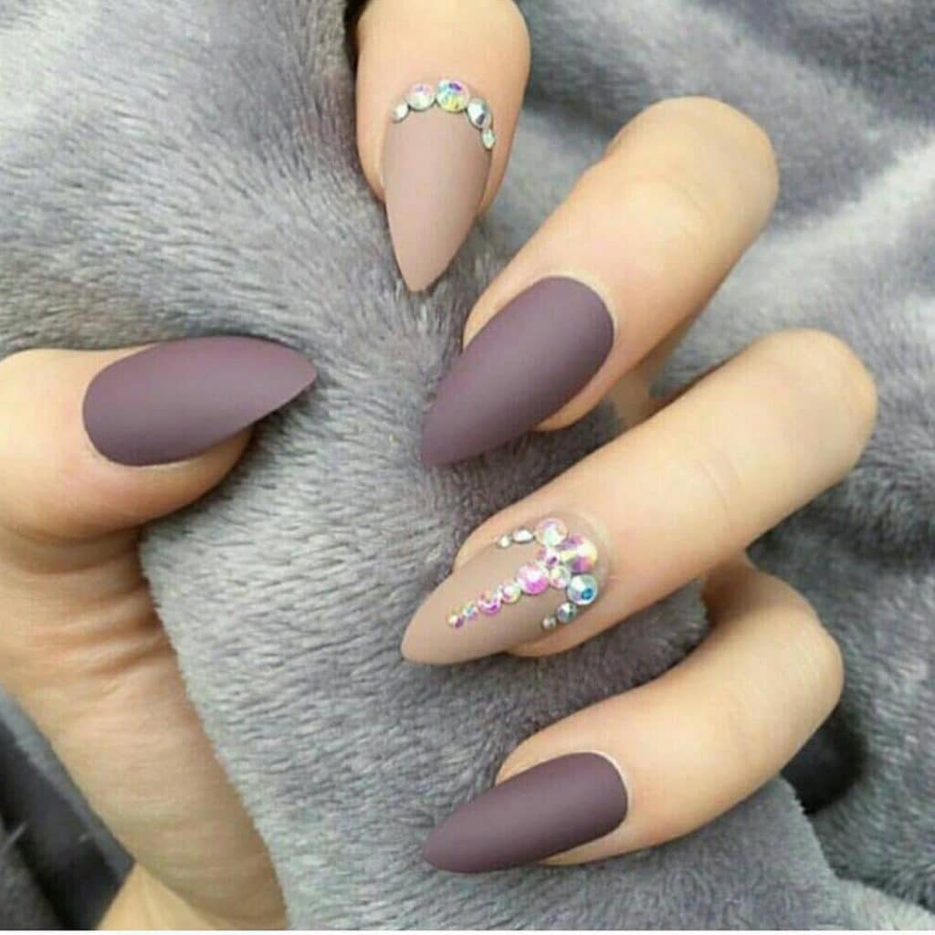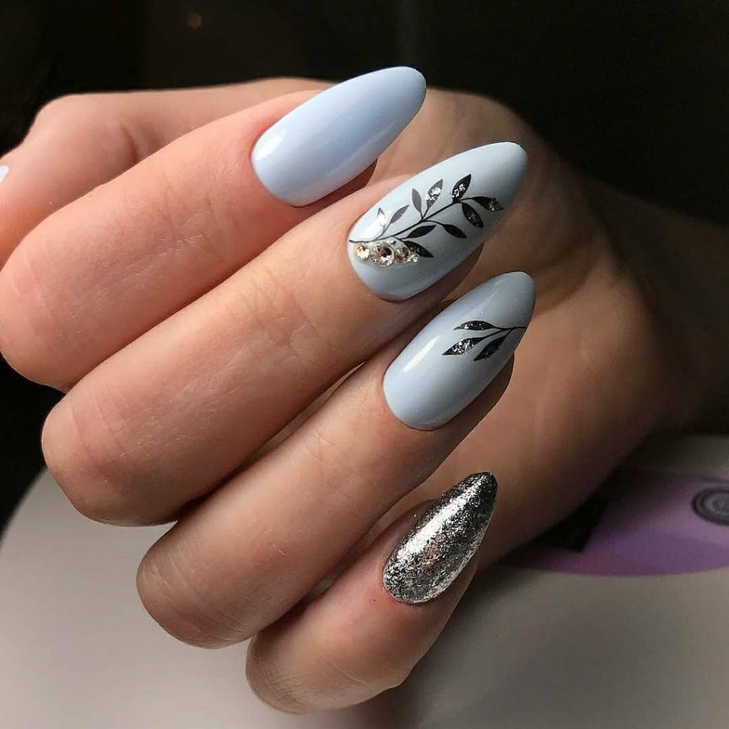 Well, lastly, some stunning stylish ideas for manicure on almond-shaped nails. Here we could not help but stop at a matte design - increasingly gaining popularity, a stylish geometric manicure and a minimalist trend with an emphasis on one nail.