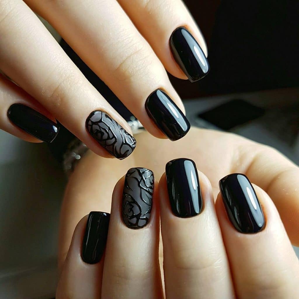 Classic black manicure never goes out of style. On its basis, you can create just a huge number of various design options.