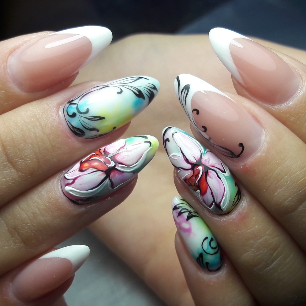 - Techniques and options. And here, complete chaos and confusion already reigns supreme. After all, the masters offer us just a huge amount of all kinds of nail design options. However, if you start to understand, then you can distinguish several major fashion trends: Hollywood manicure, color block manicure, art painting, craquelure manicure etc. Next, we consider each of them in more detail.