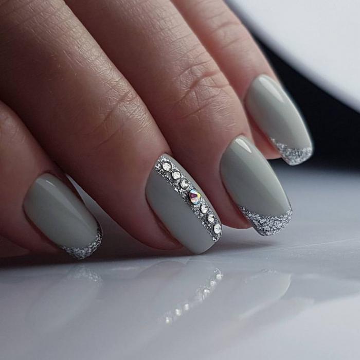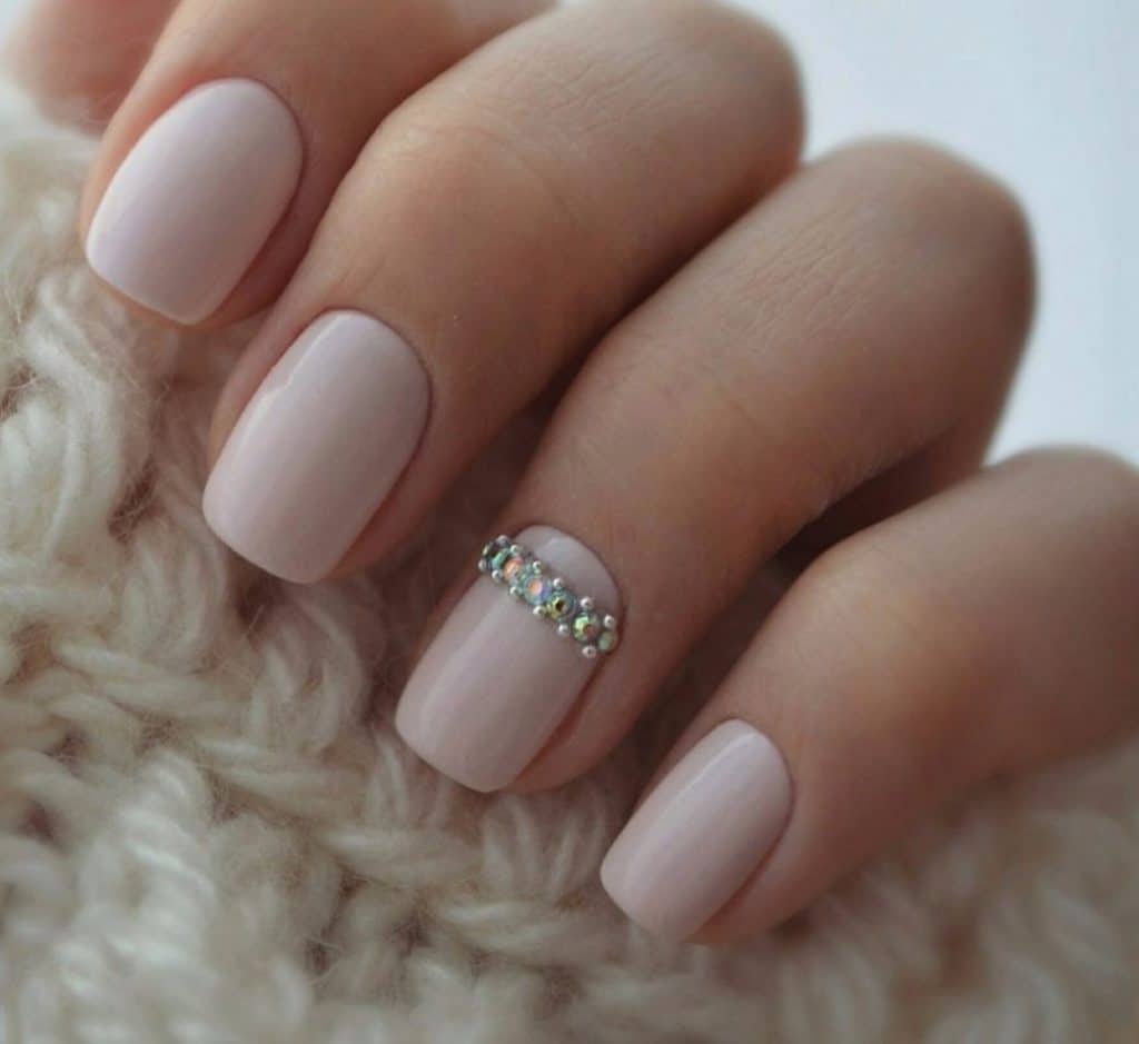 Well, where without these faithful helpers! Any manicure with them will sparkle with new colors.Monochrome manicure is an ideal platform for decoration, the main thing is not to overdo it with the number of elements and preserve the nobility of a plain manicure.