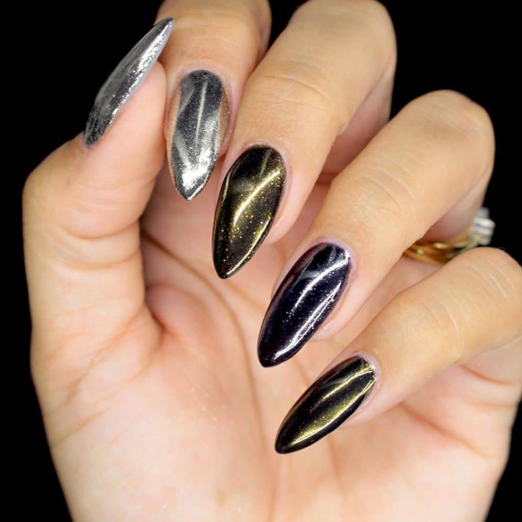 Classic monophonic manicure involves the use of only one color for coating. Over time, nail art masters diluted the monotony by highlighting several nails on the hand with a picture or decoration materials. Monochrome matte manicure and non-ferrous metallic technique are also popular.