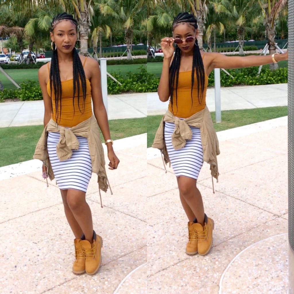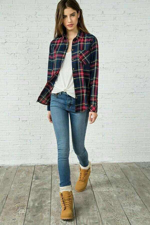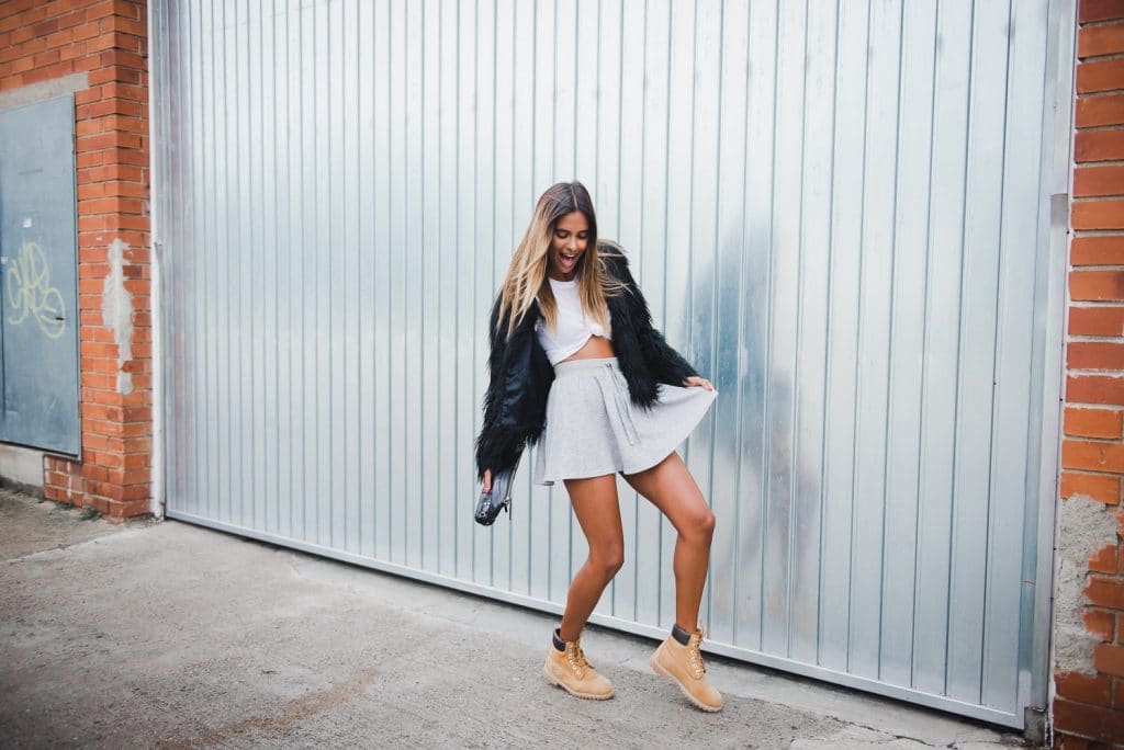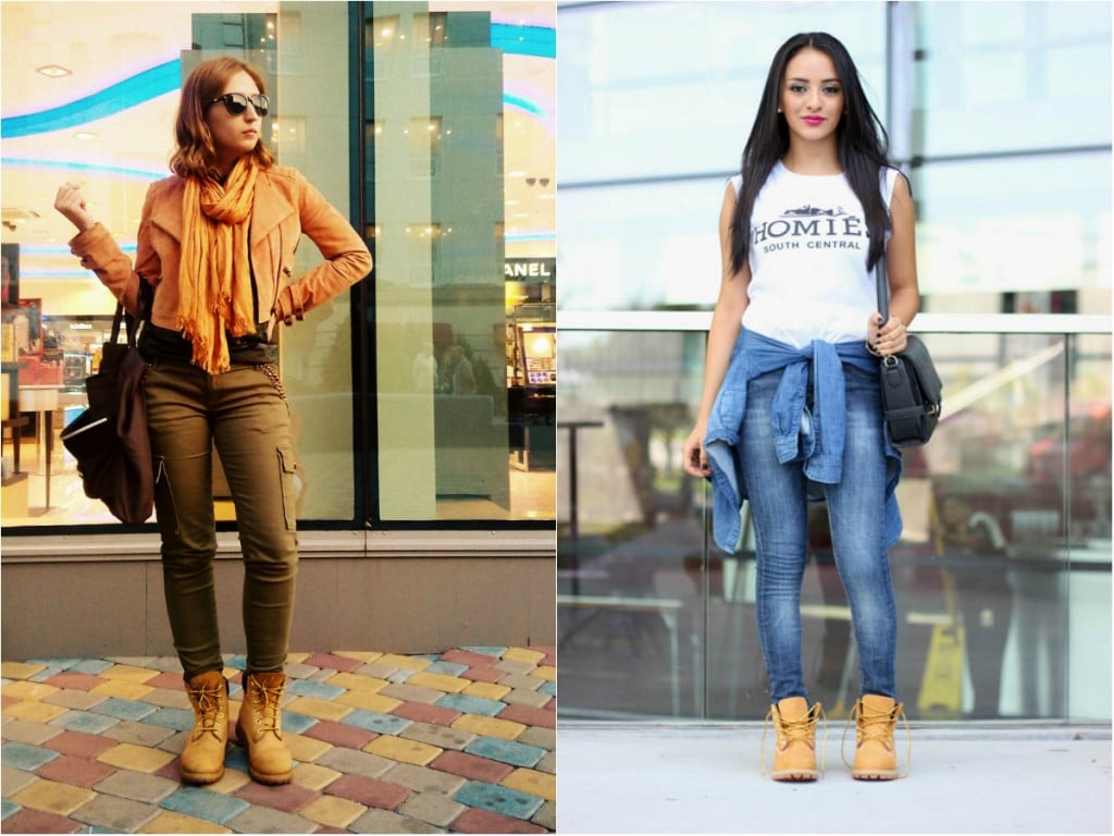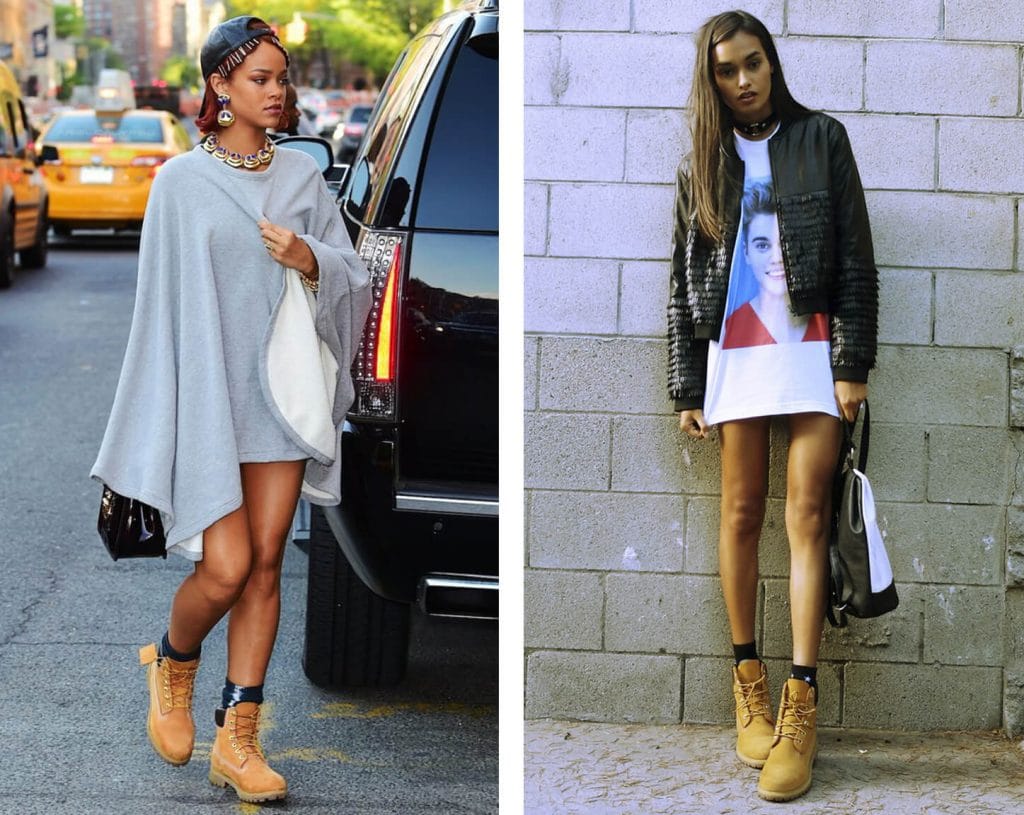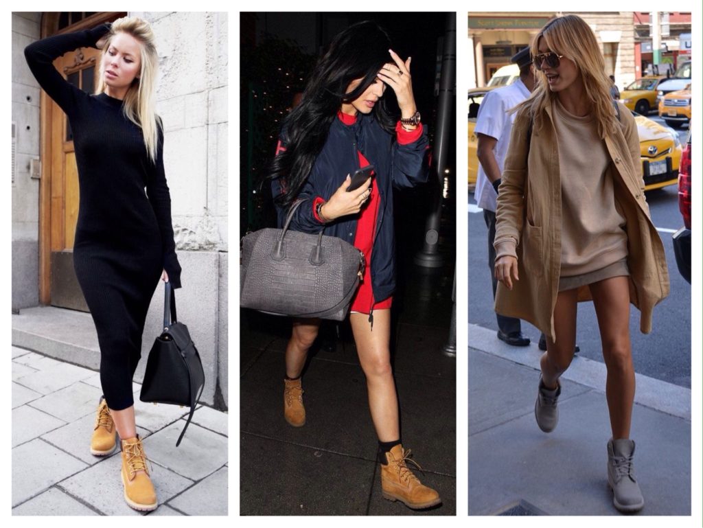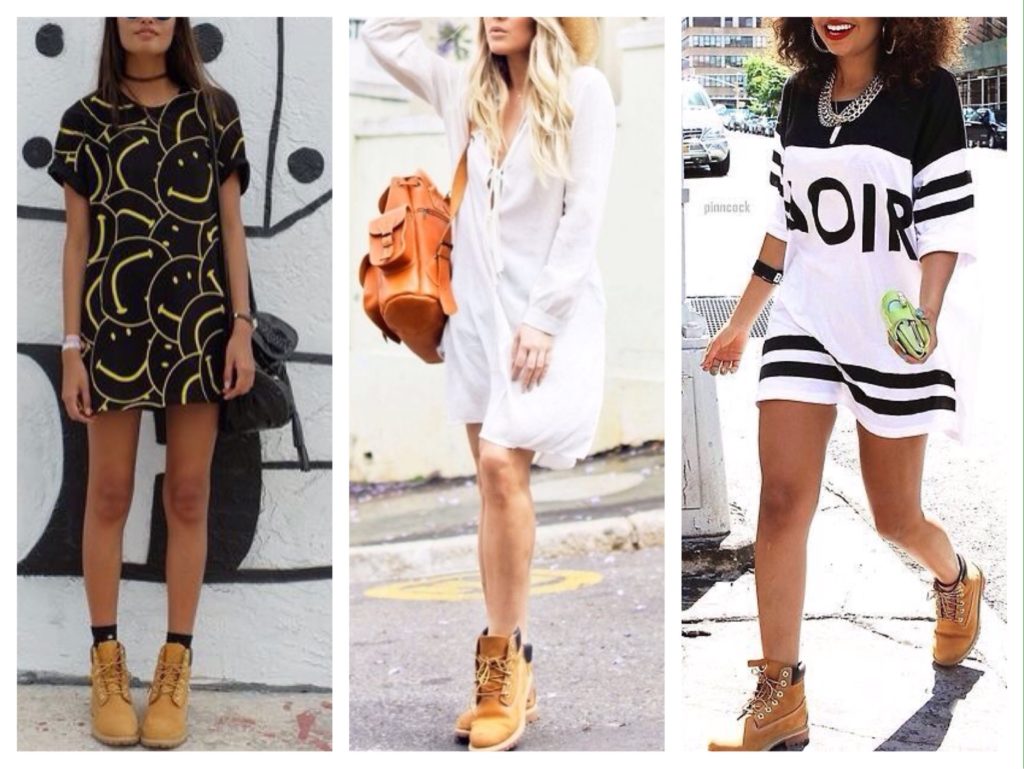 Dress, skirts and shorts are also no exception for combining them with timberlands.