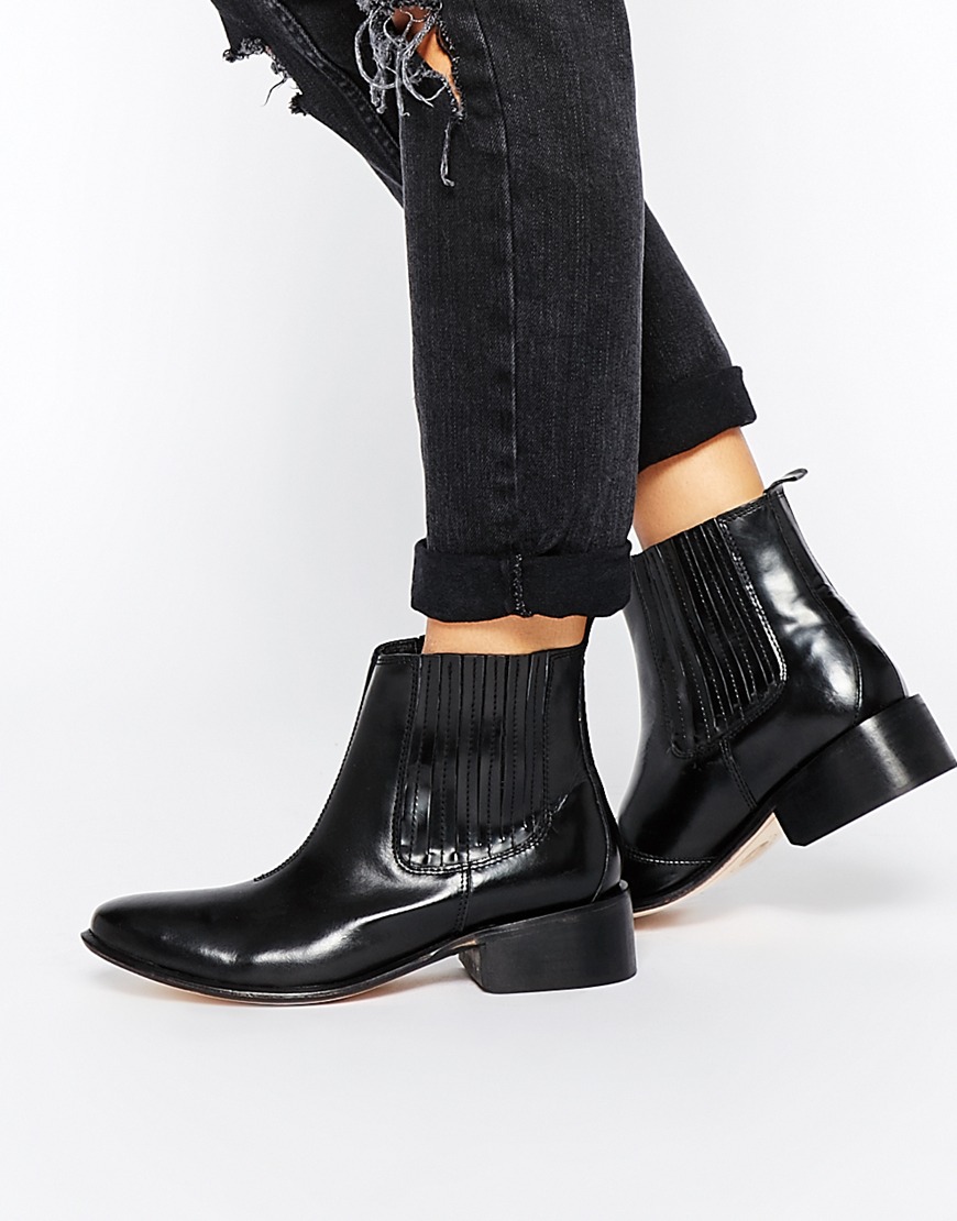 Black legends are excellent with the lacquered surface of the chelsea boots.