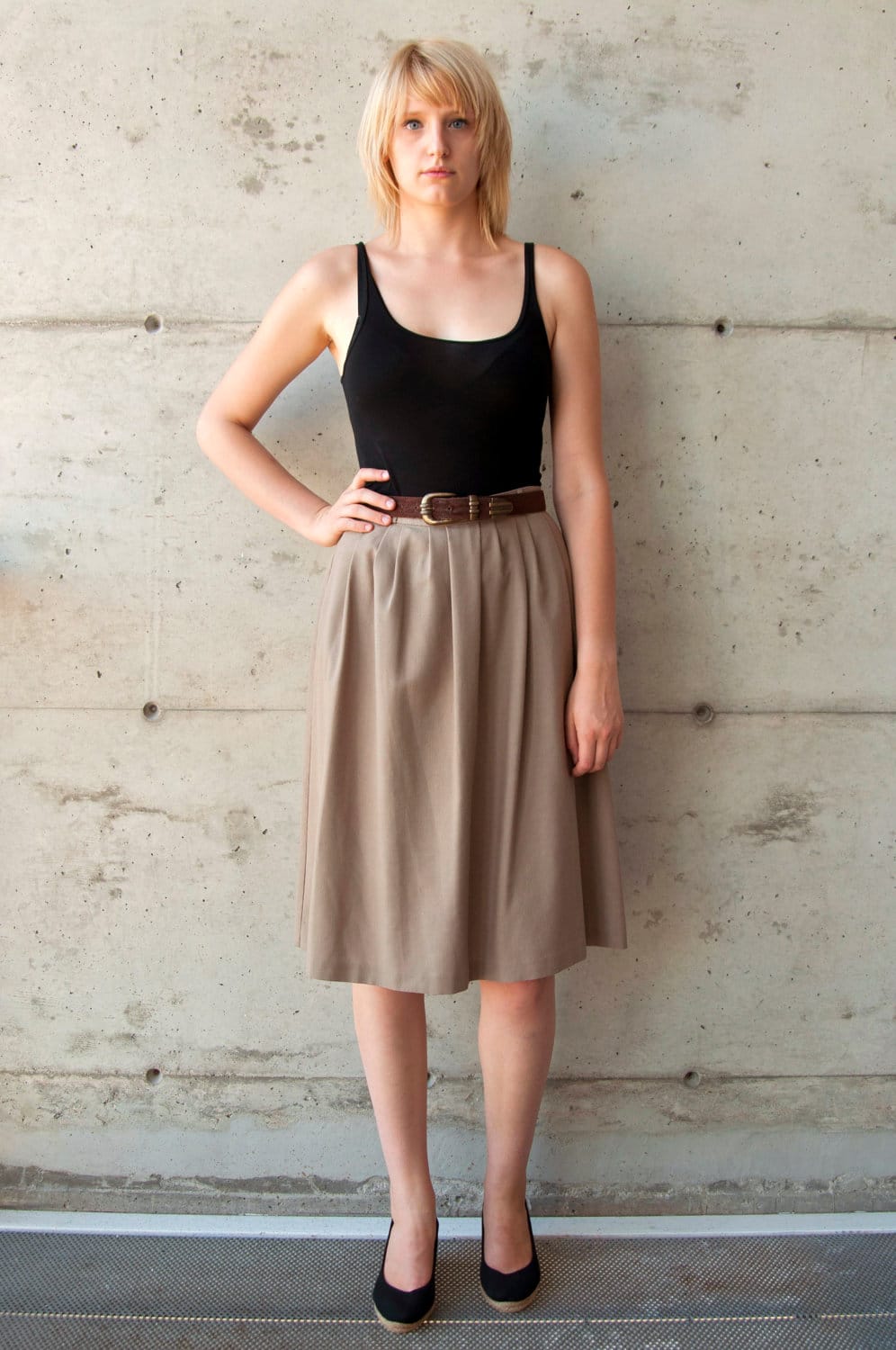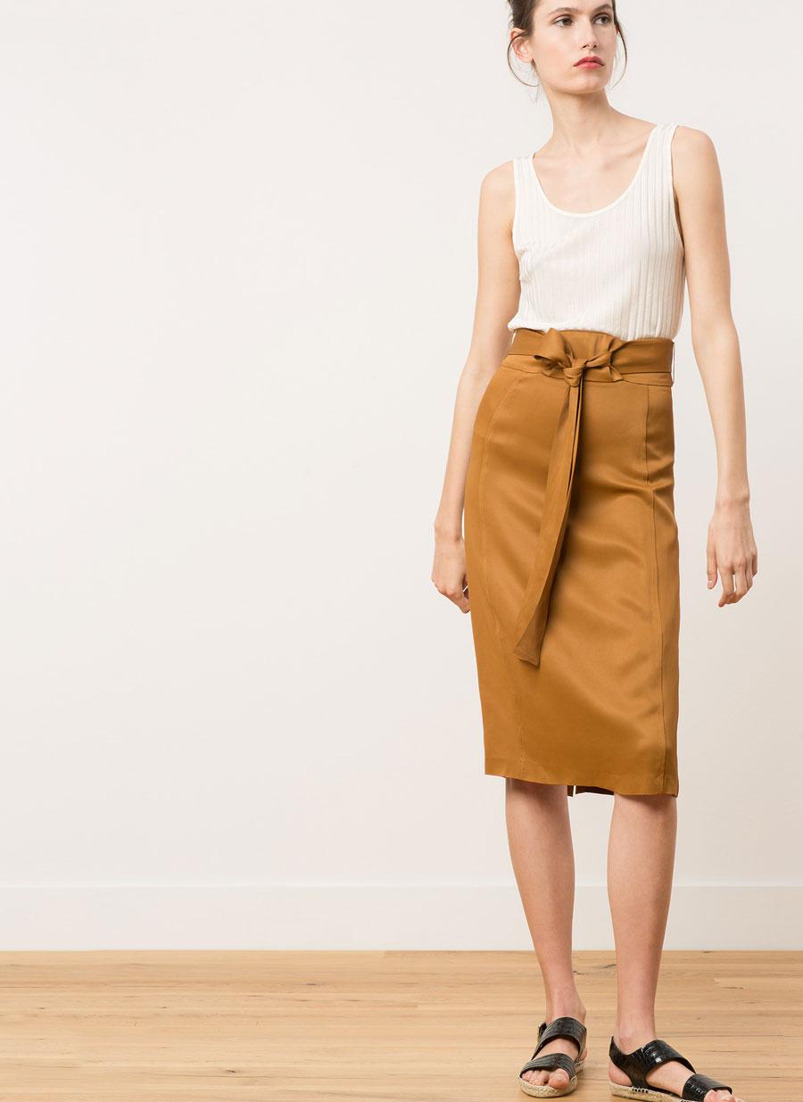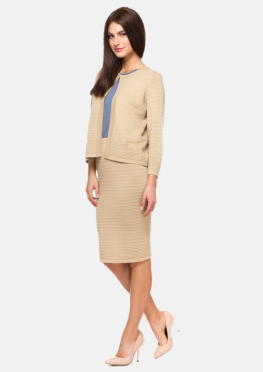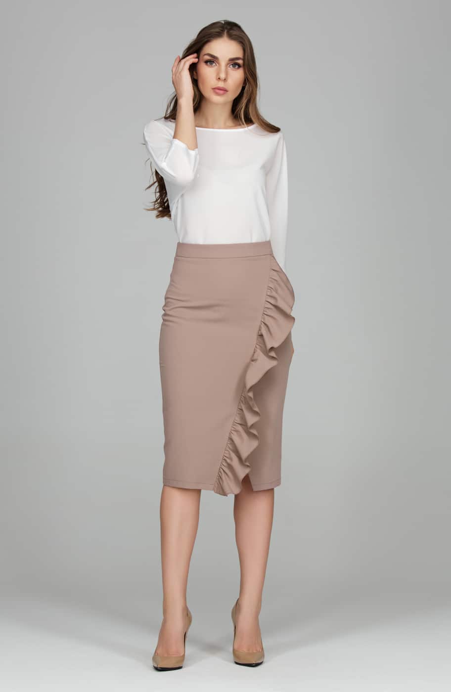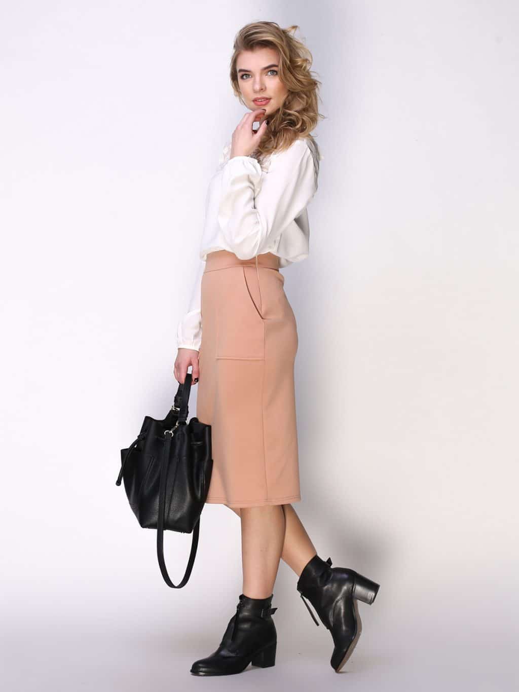Such a skirt in different shades of beige, it is easy to combine both with light, summer T-shirts, and with jackets and jackets, of a warmer or more strict cut.