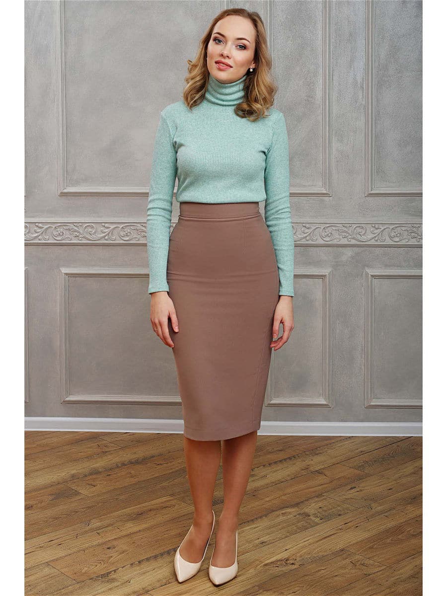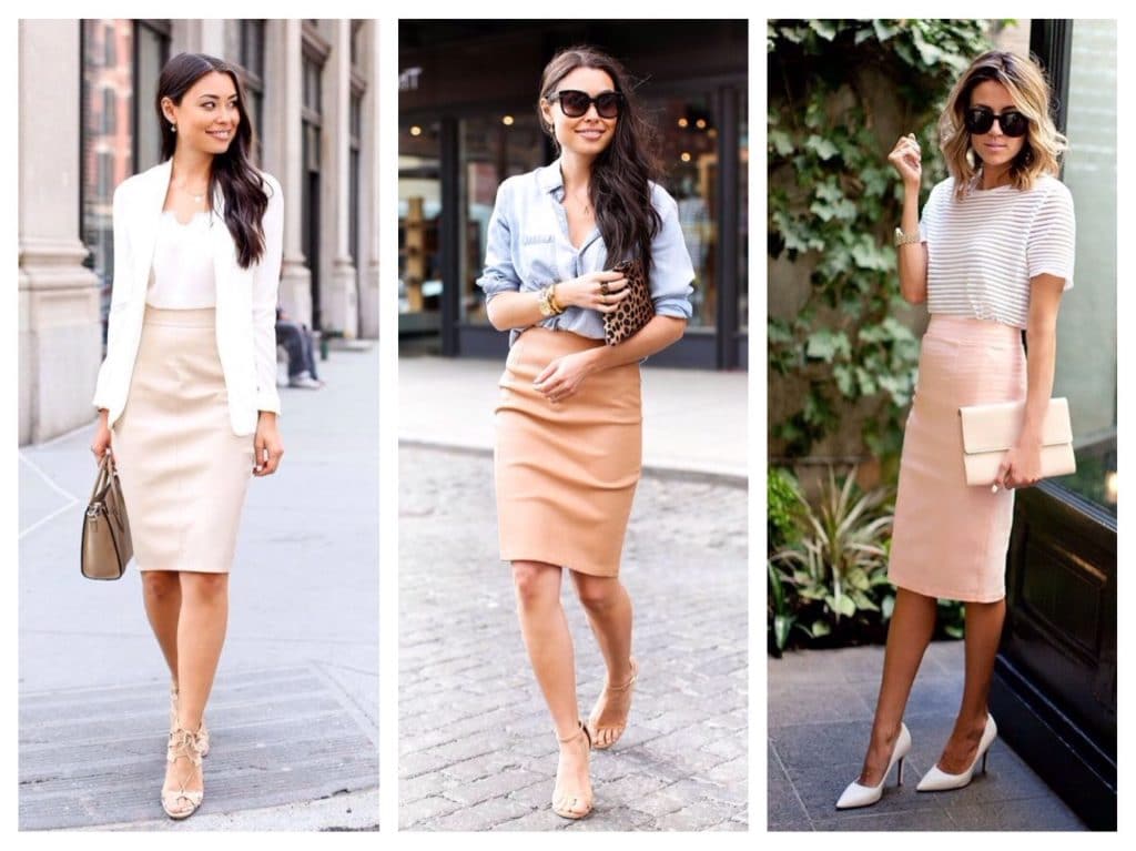 Knitted or warmer sweaters are very easy to combine with a beige pencil skirt.