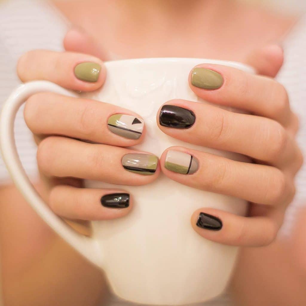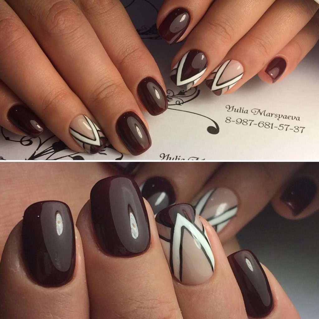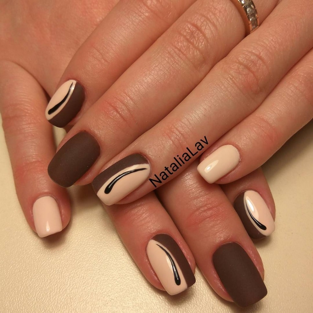 Geometric coffee manicure looks very stylish and elegant. It is mainly a combination of coffee shades and all kinds of geometric patterns.
