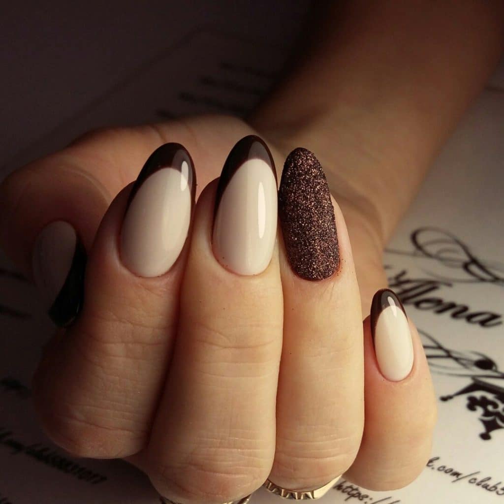 A very popular lately manicure in coffee and beige shades. He looks amazingly gentle and very elegant. It looks unobtrusive and at the same time stylish.
