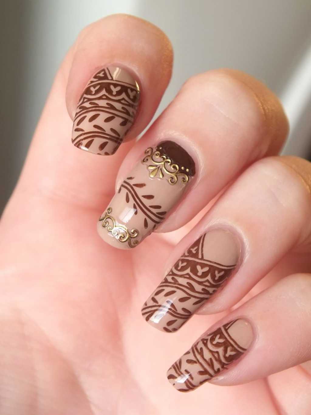 - Coffee manicure with a pattern.