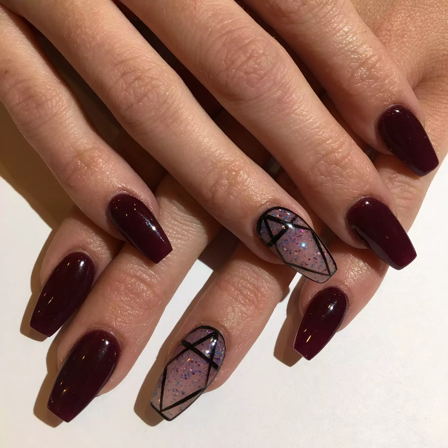 - Geometric coffee manicure.